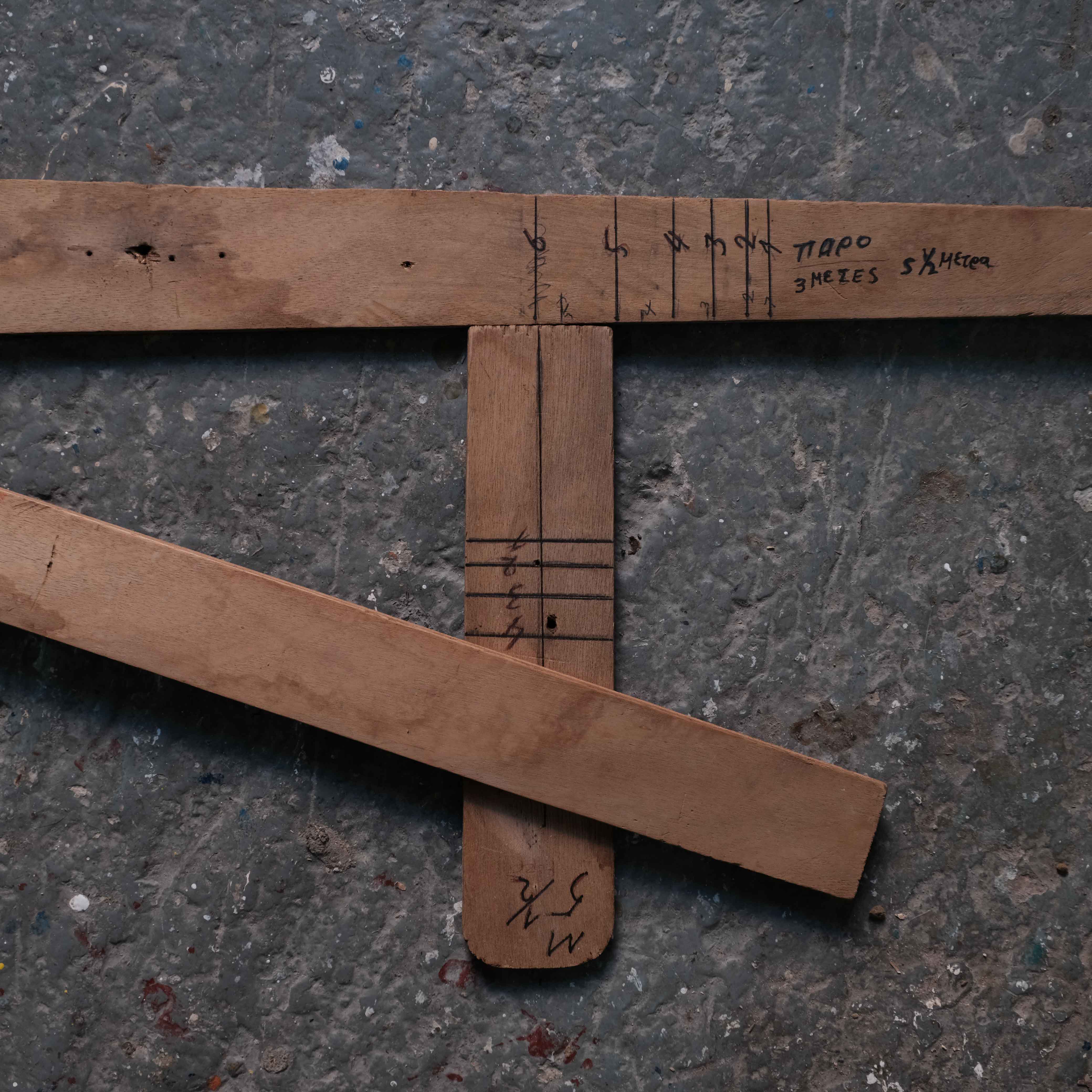 The “Fouskis” boatyard was established in 1952 by Giannis Zorzos, known as “Mastro-Giannis.” This selection of his carpentry and boatbuilding tools includes many made by metal workshops on Syros.
