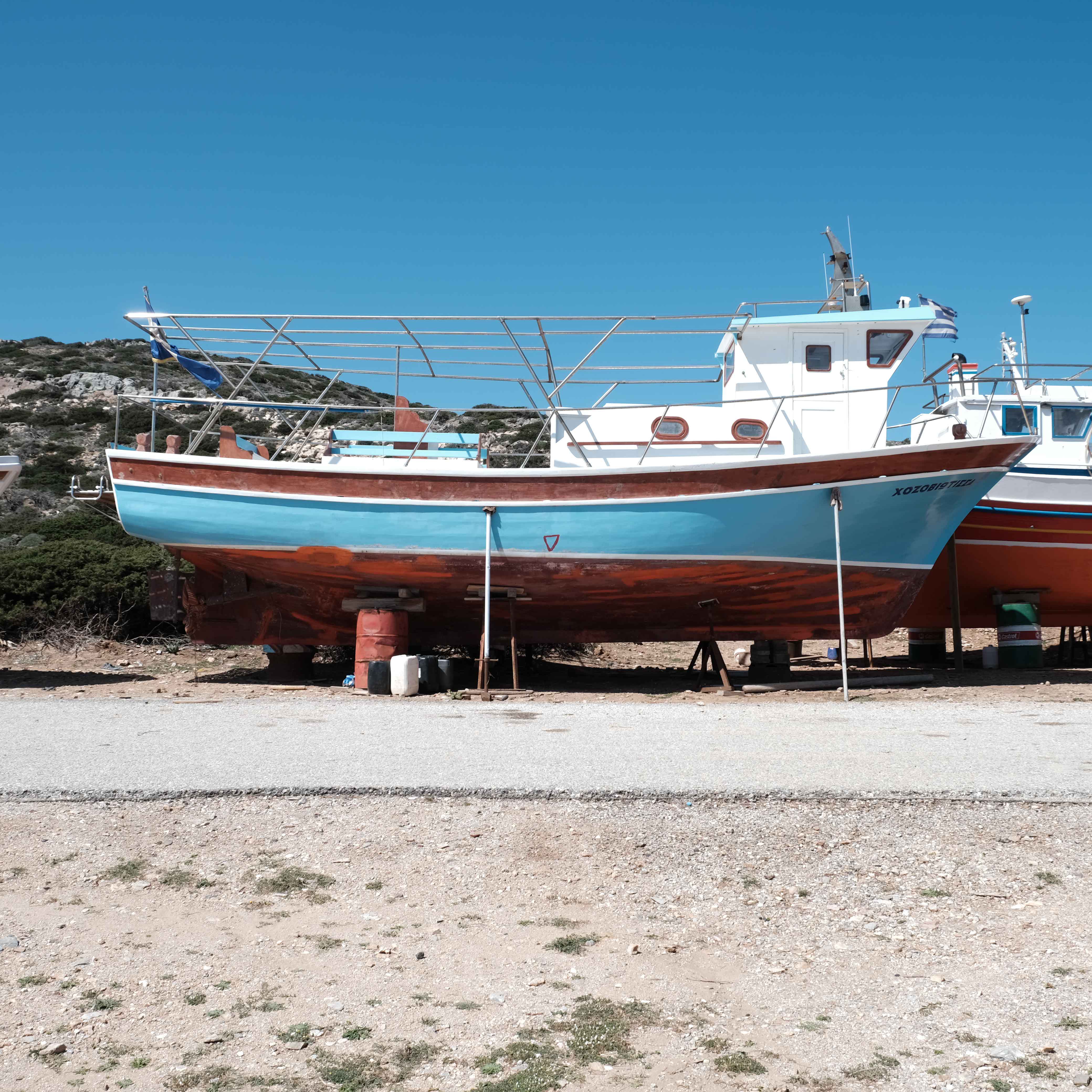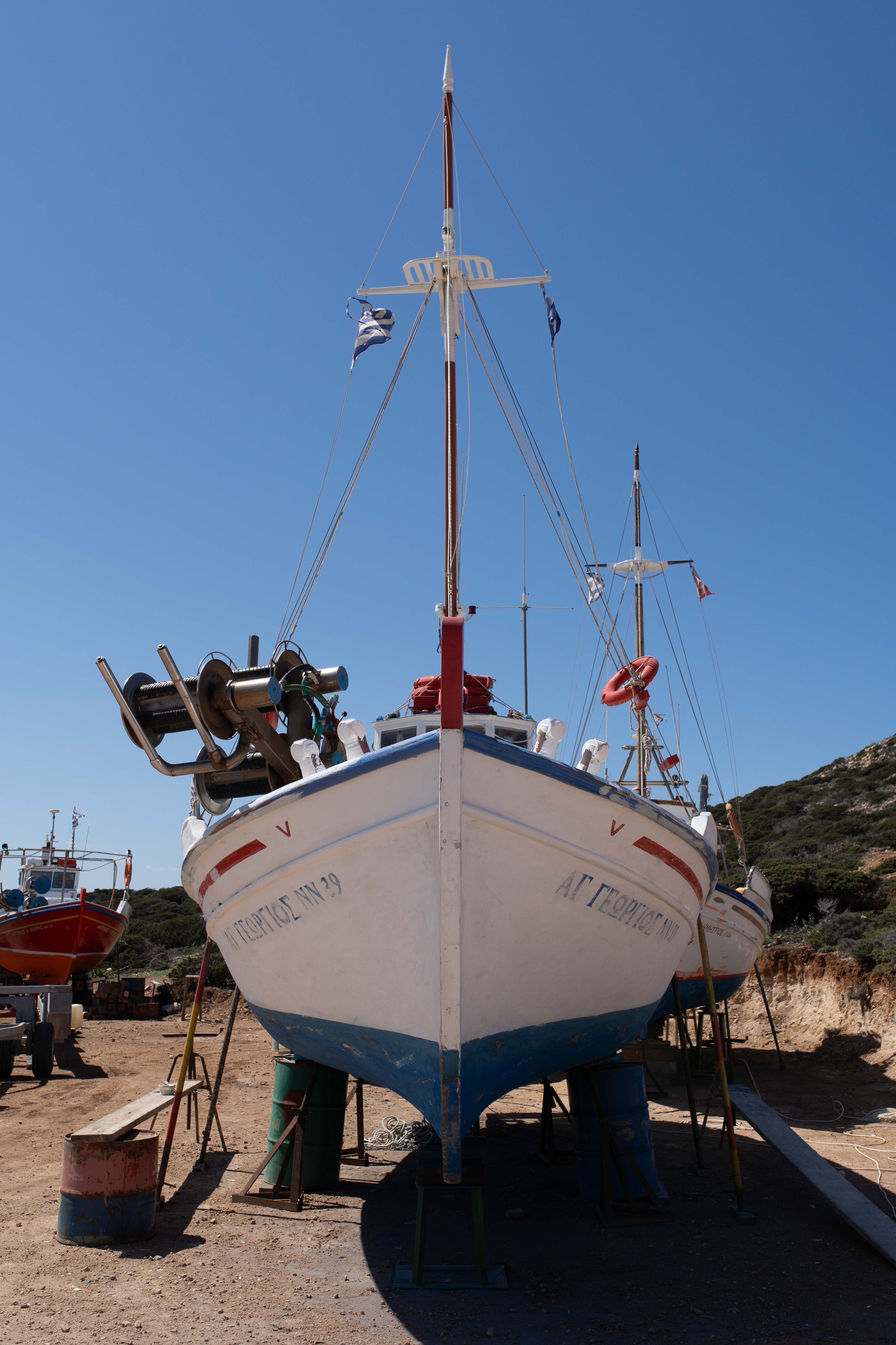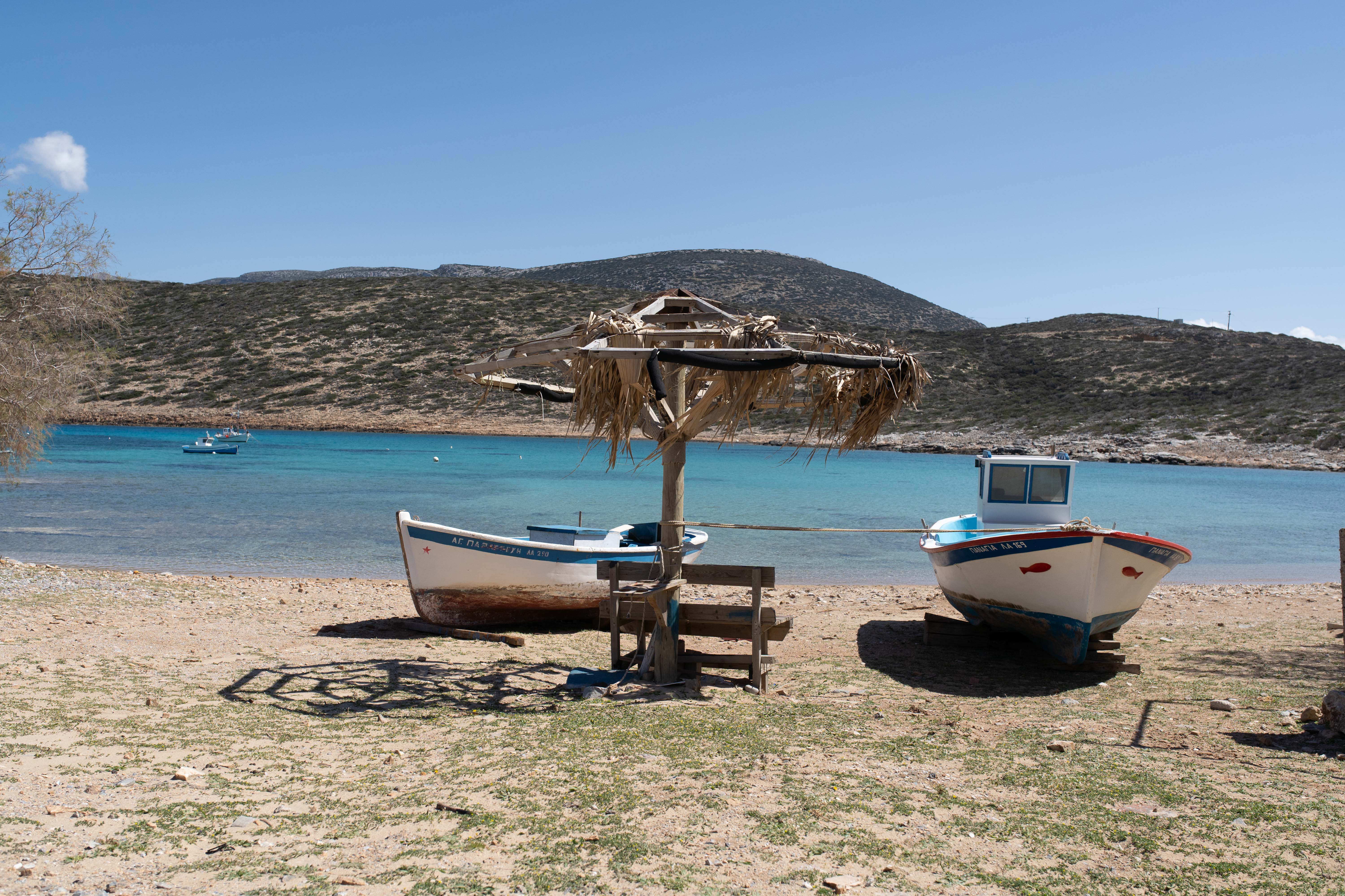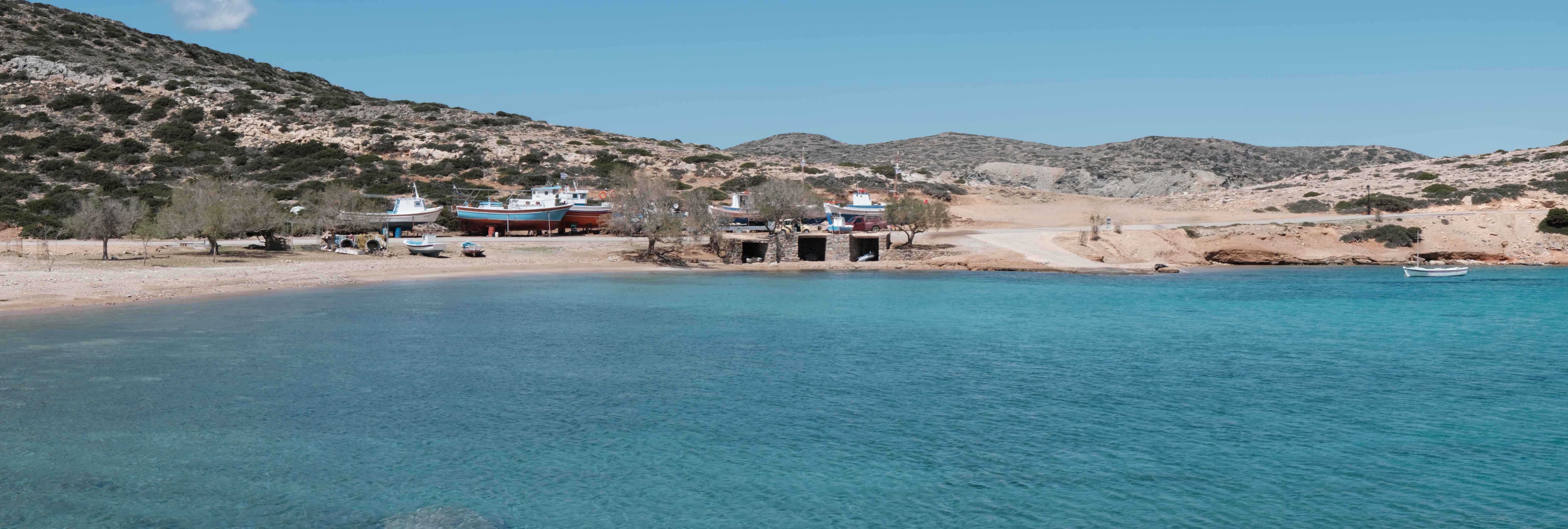 Located on the island’s southern edge, this bay provides ample shelter for boats and beachgoers alike. In the off season, it functions as the main boat maintenance yard of Amorgos, where boats are drydocked for repair by Giannis Roussos and his son. An initiative by the Fishermens’ Association of Amorgos plans to expand the boatyard’s capacity in the coming years, due to demand from the island’s fleet of traditional fishing boats.