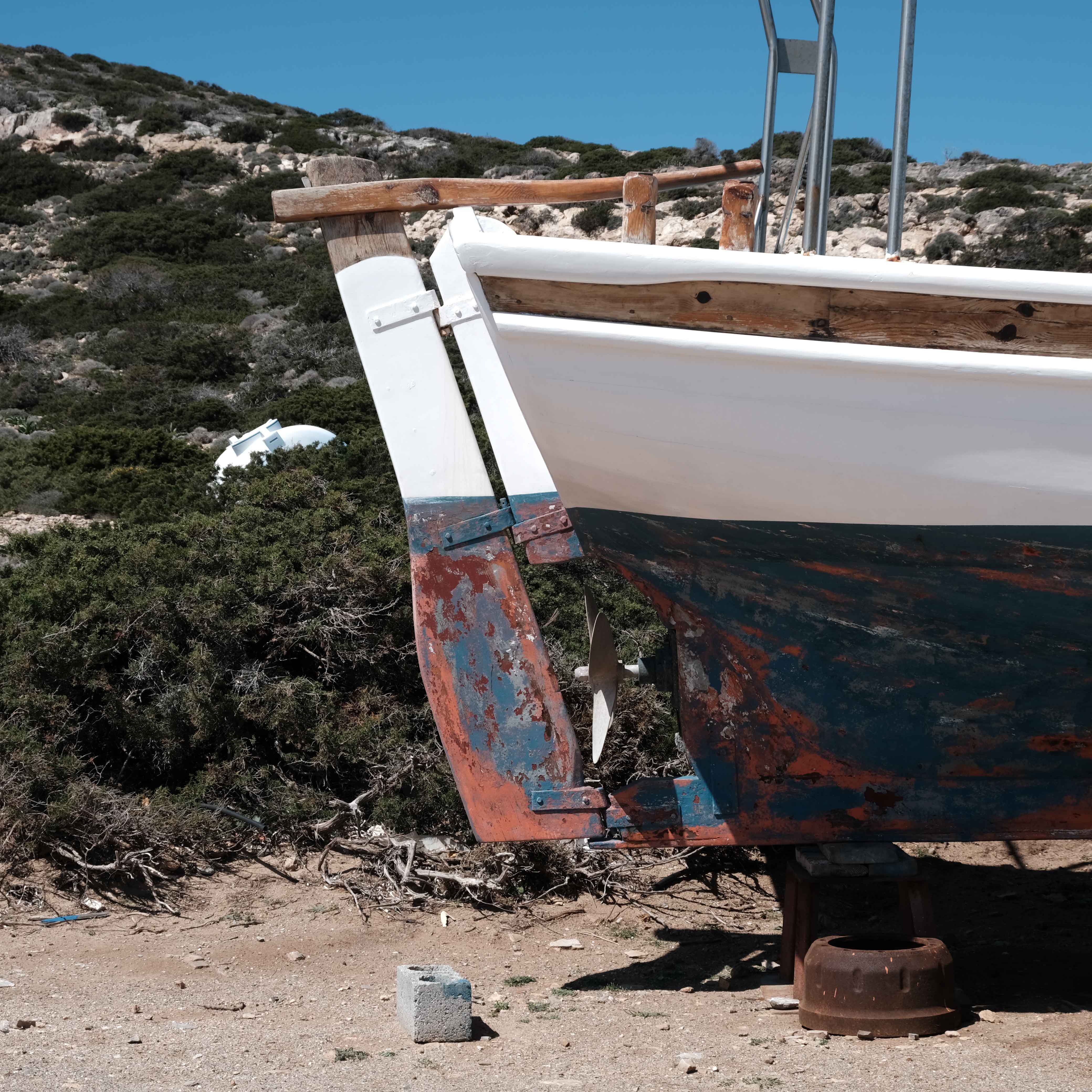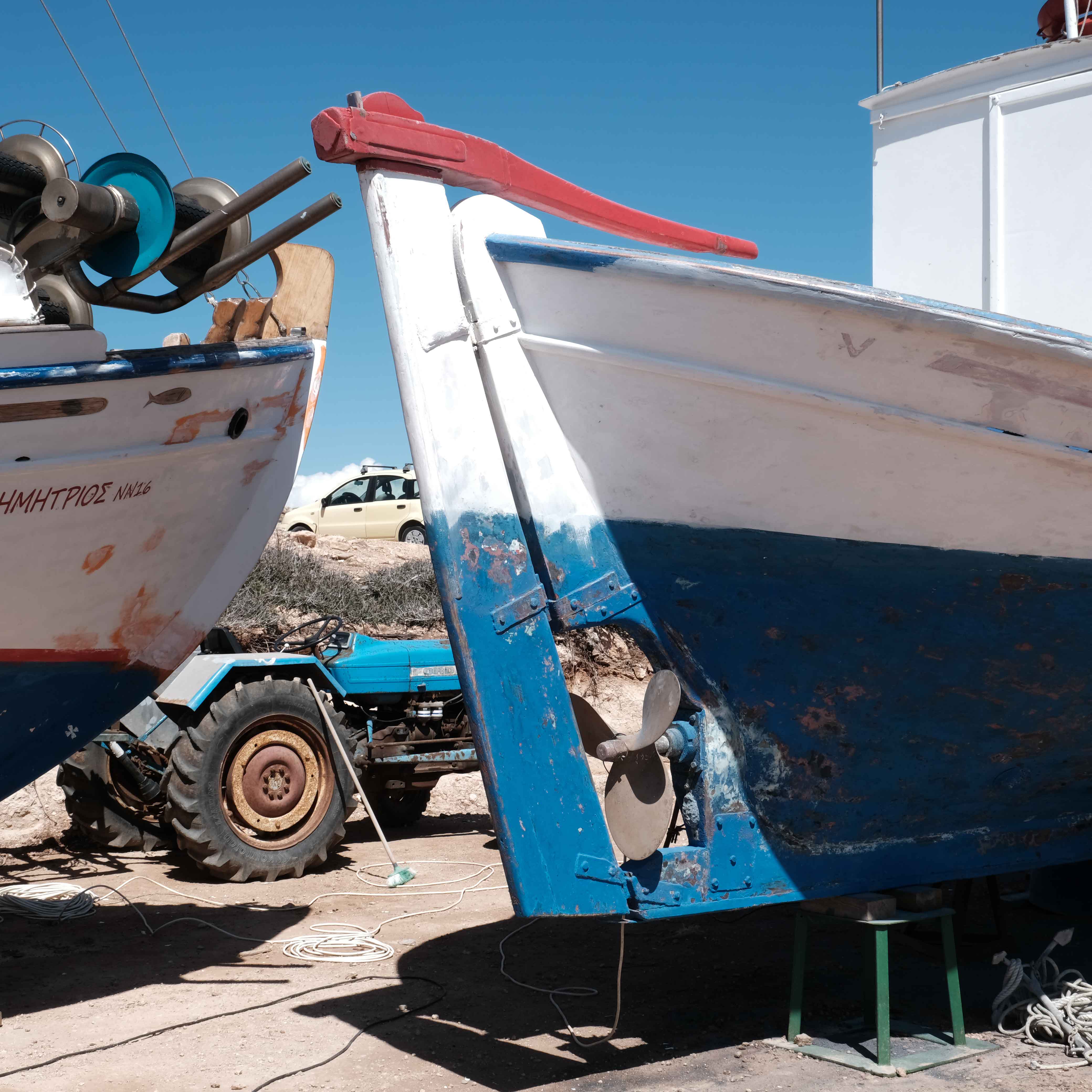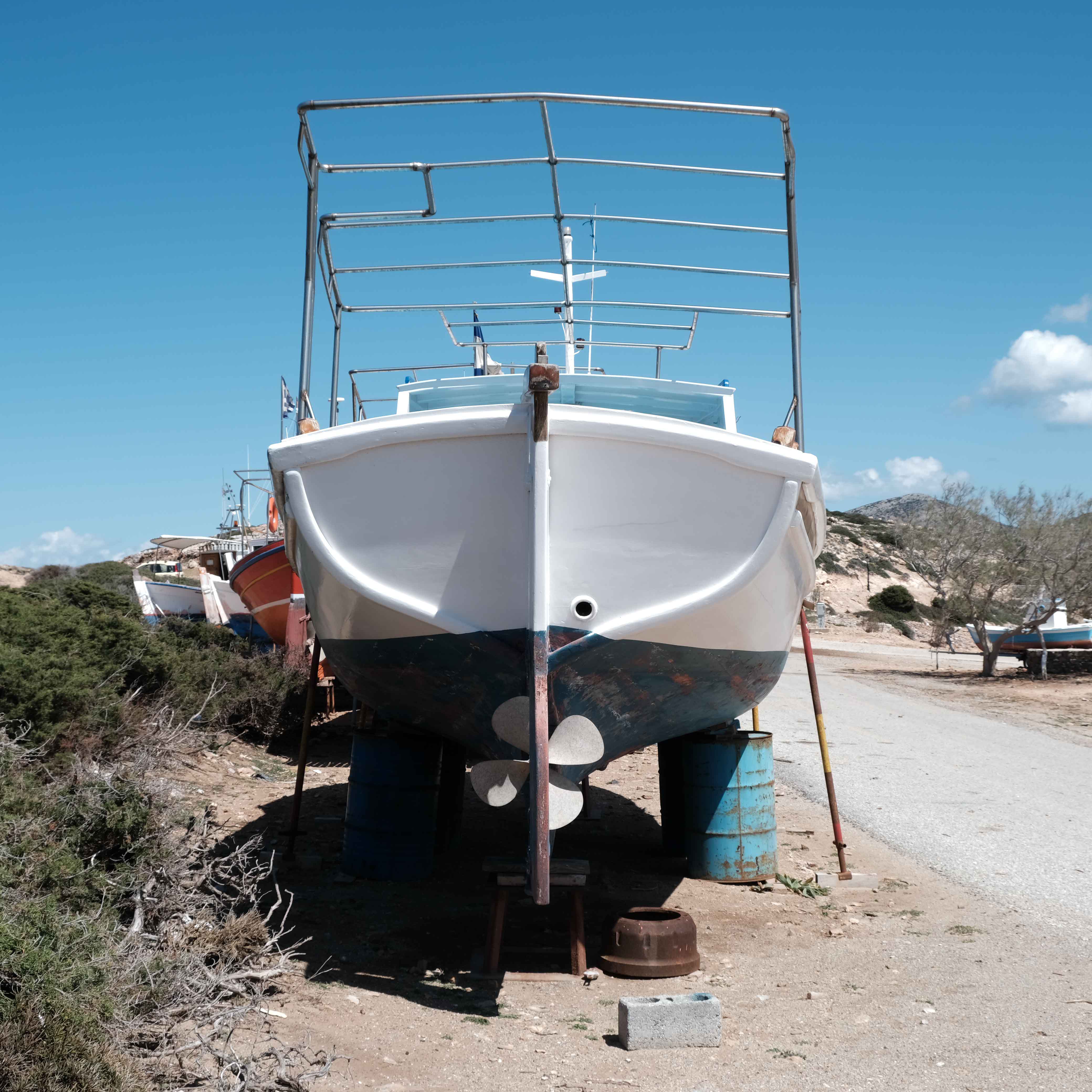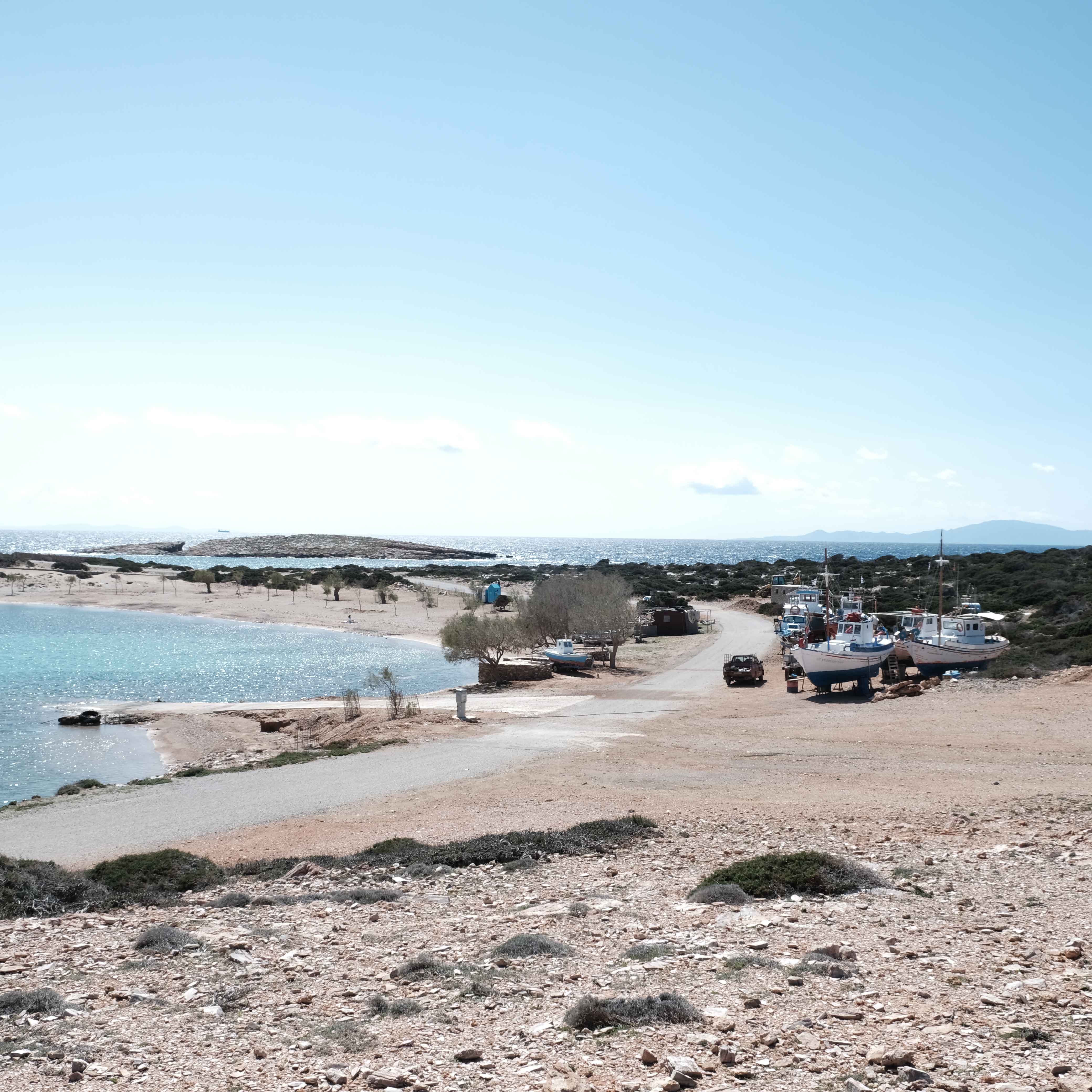 Located on the island’s southern edge, this bay provides ample shelter for boats and beachgoers alike. In the off season, it functions as the main boat maintenance yard of Amorgos, where boats are drydocked for repair by Giannis Roussos and his son. An initiative by the Fishermens’ Association of Amorgos plans to expand the boatyard’s capacity in the coming years, due to demand from the island’s fleet of traditional fishing boats.