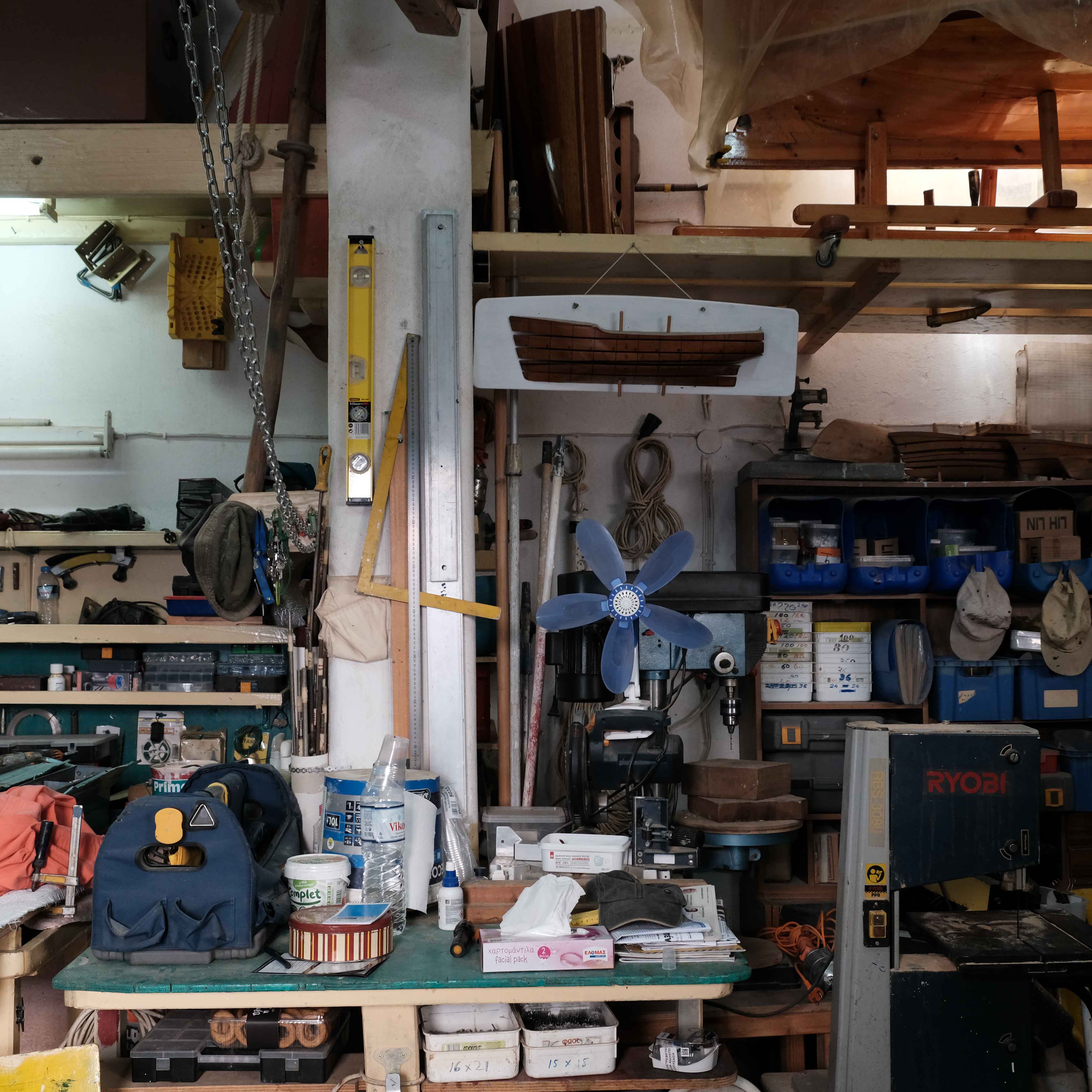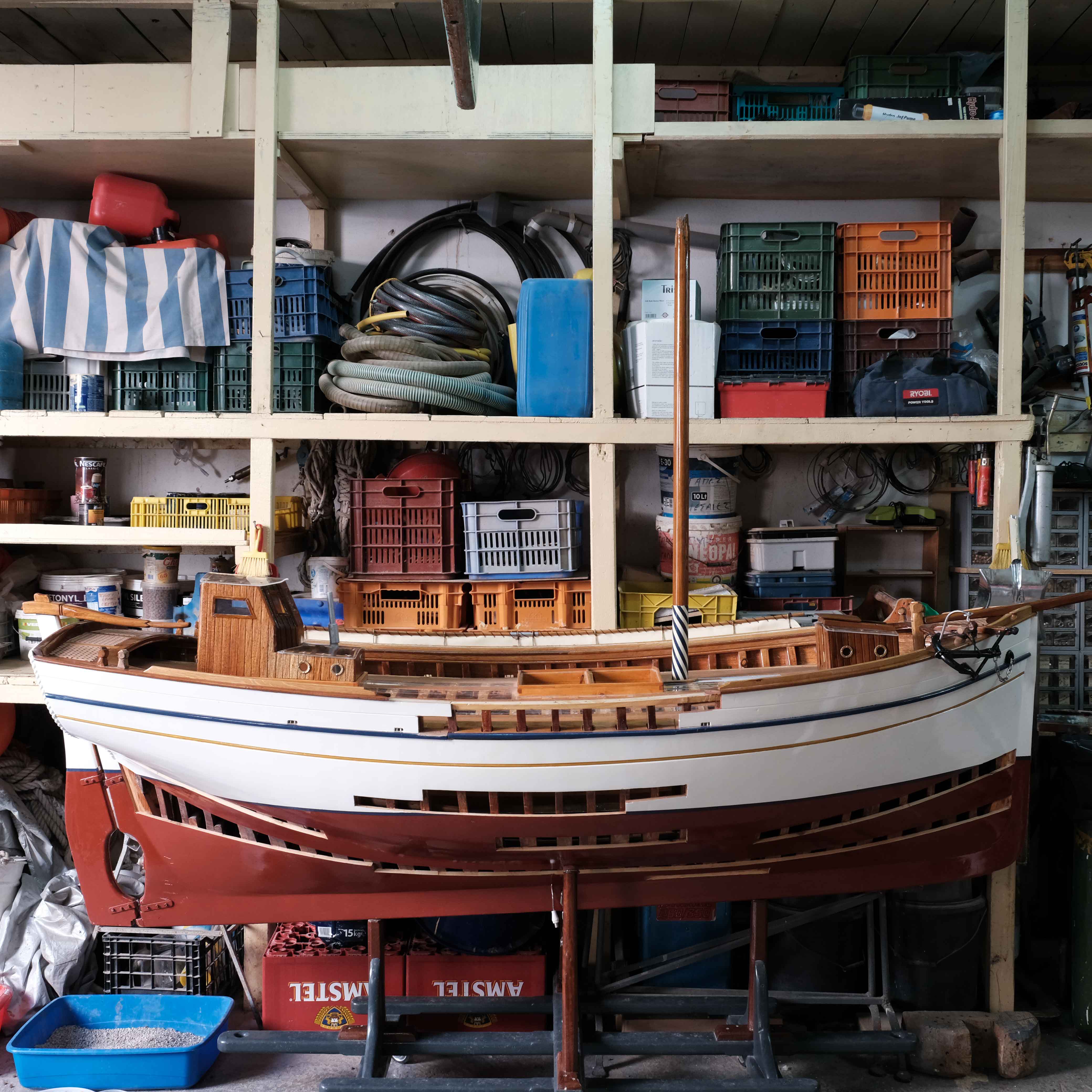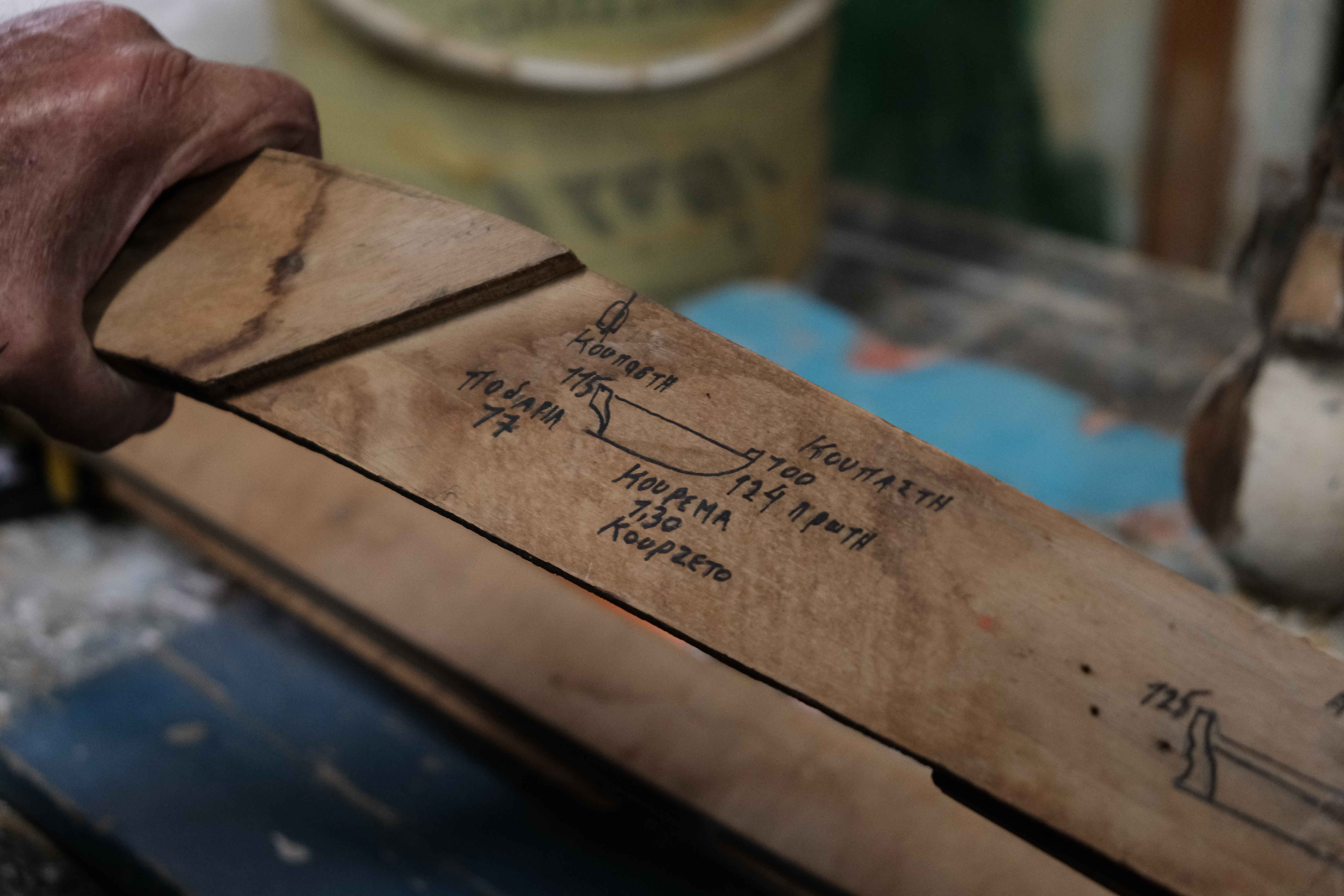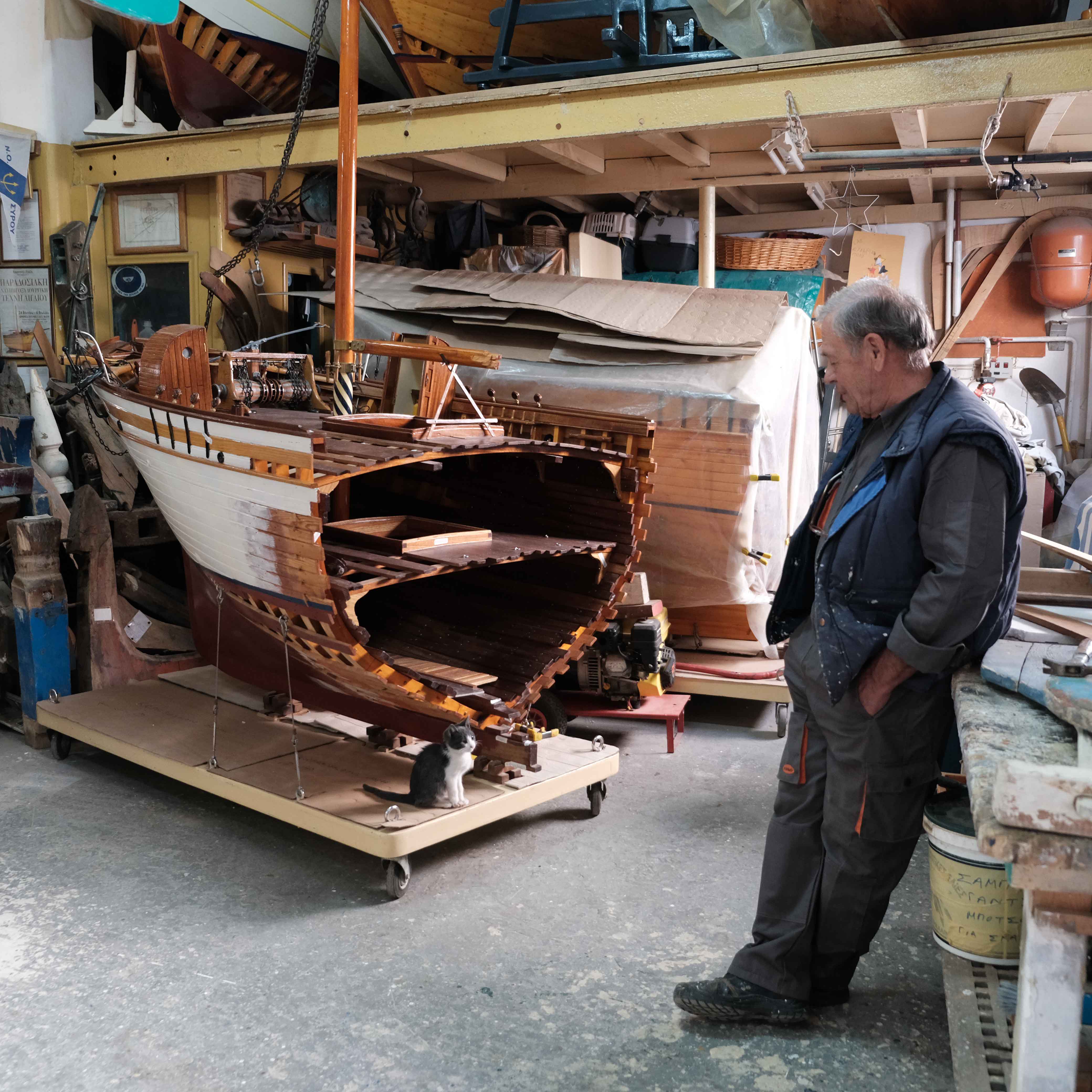 Manolis Zorzos, one of two brothers who inherited the “Fouskis” boatyard, maintains a workshop in the “Karnagio” neighborhood of Ermoupolis where he builds precise replicas of various wooden boat types in the Aegean.
