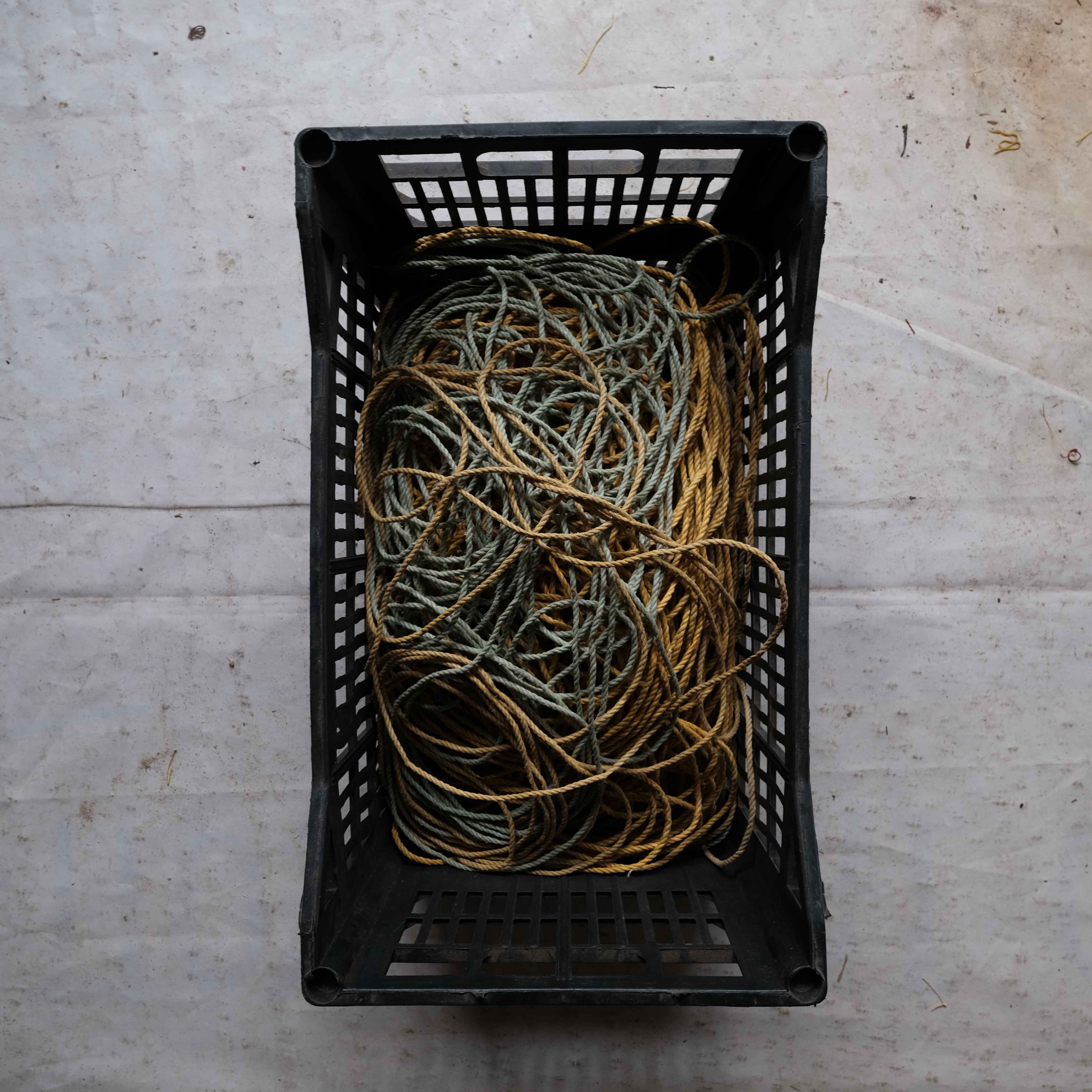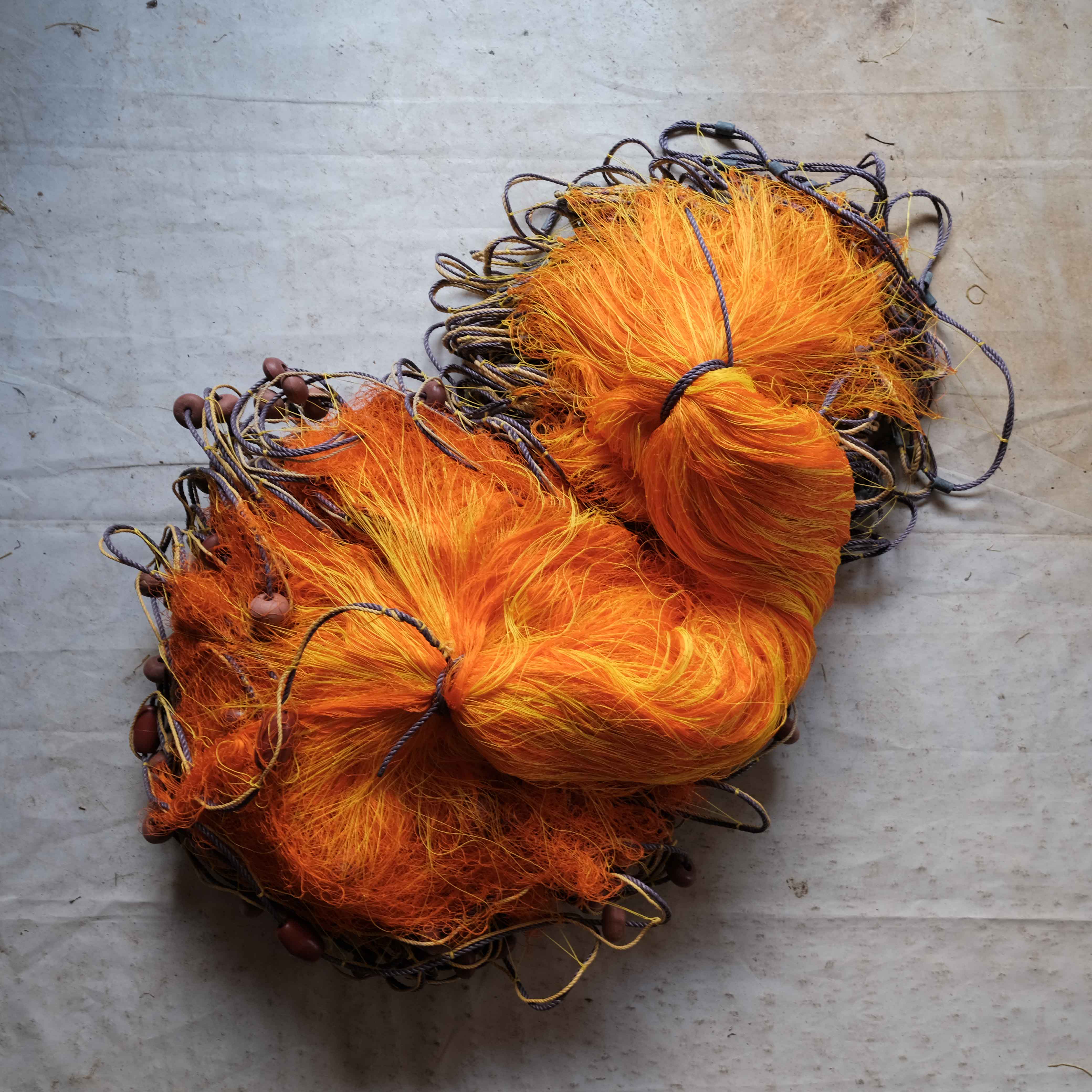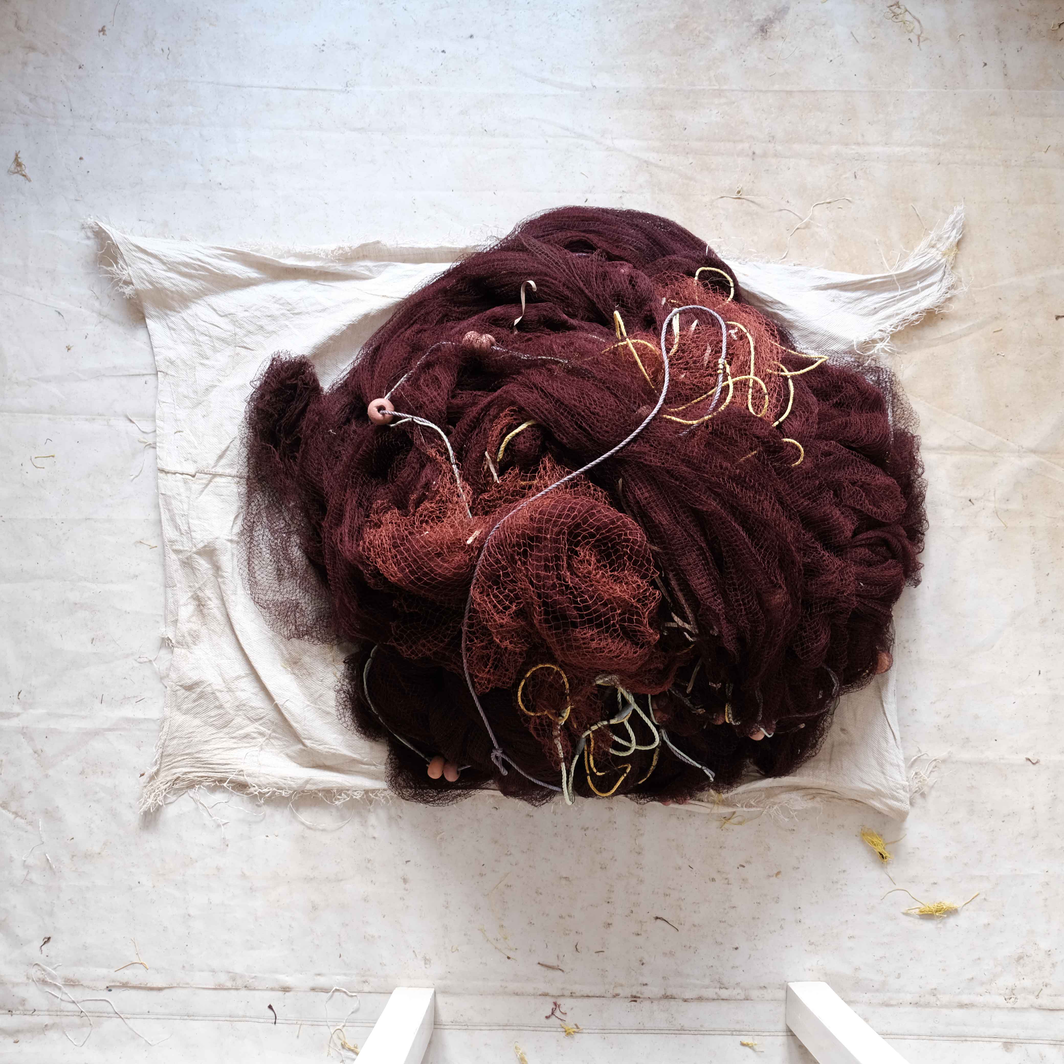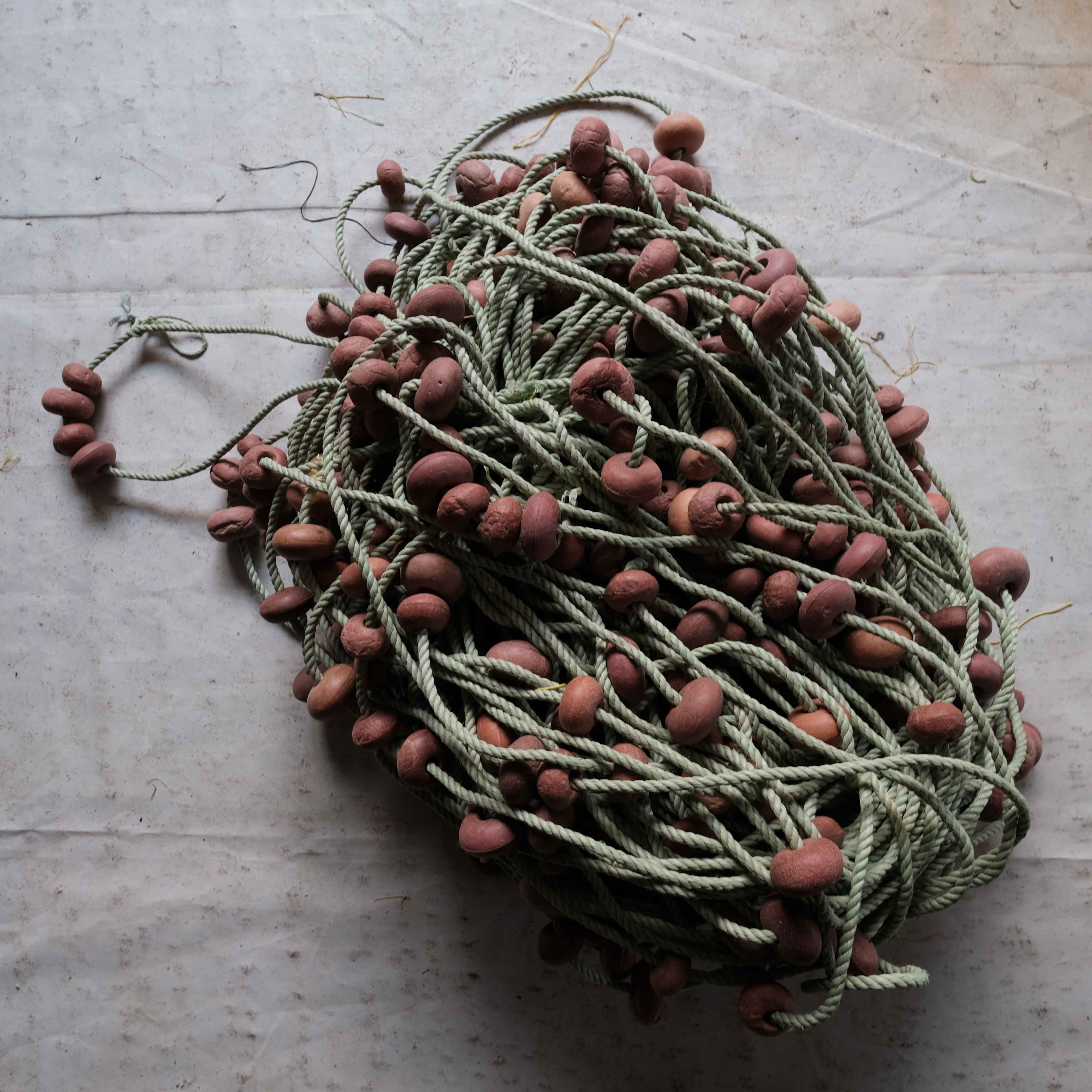 The wide range of equipment and accessories needed for net fishing and repair is on full display in this taxonomical documentation of selected nets, traps, buoys, ropes, weights and other items in Nikolaos Vekris’s workshop.