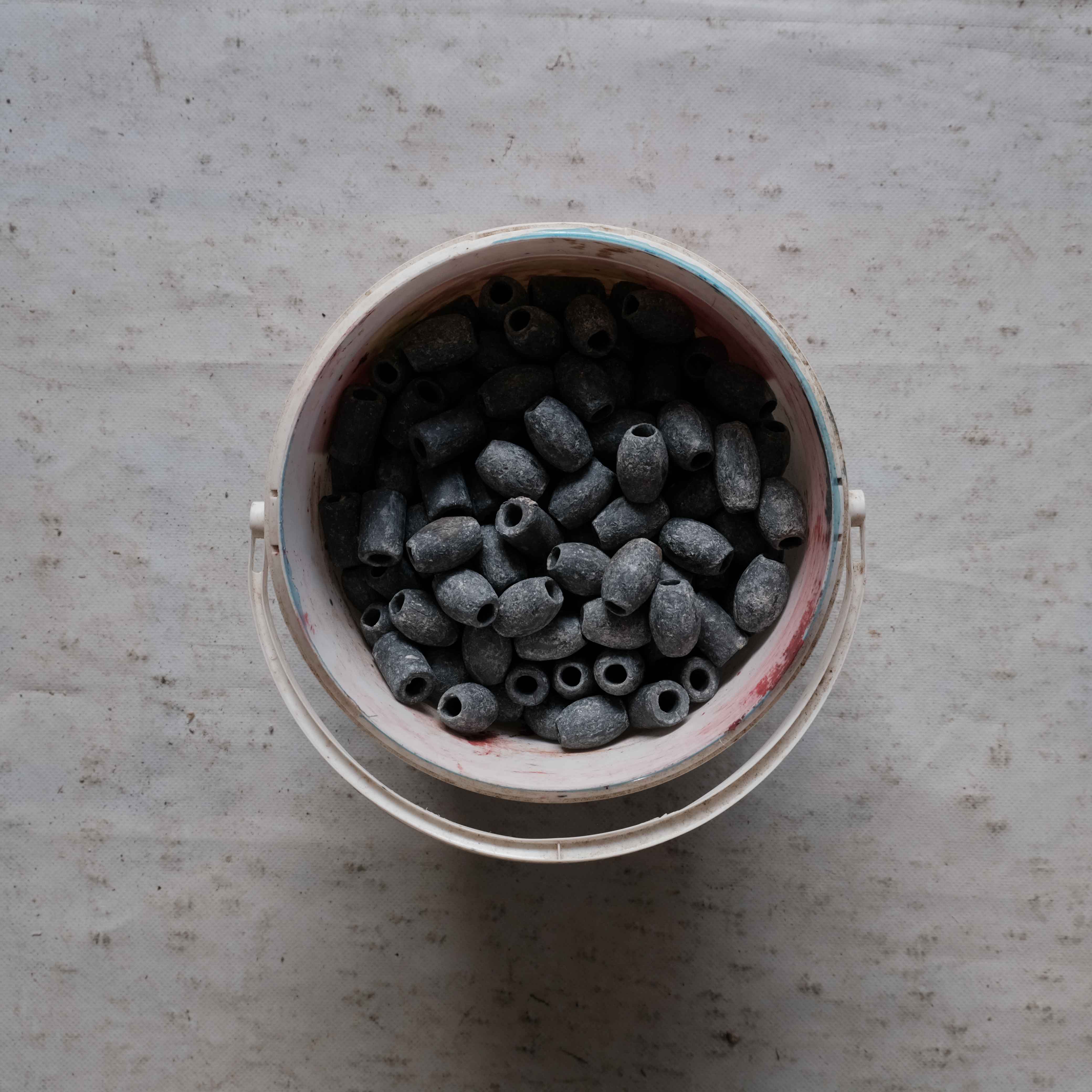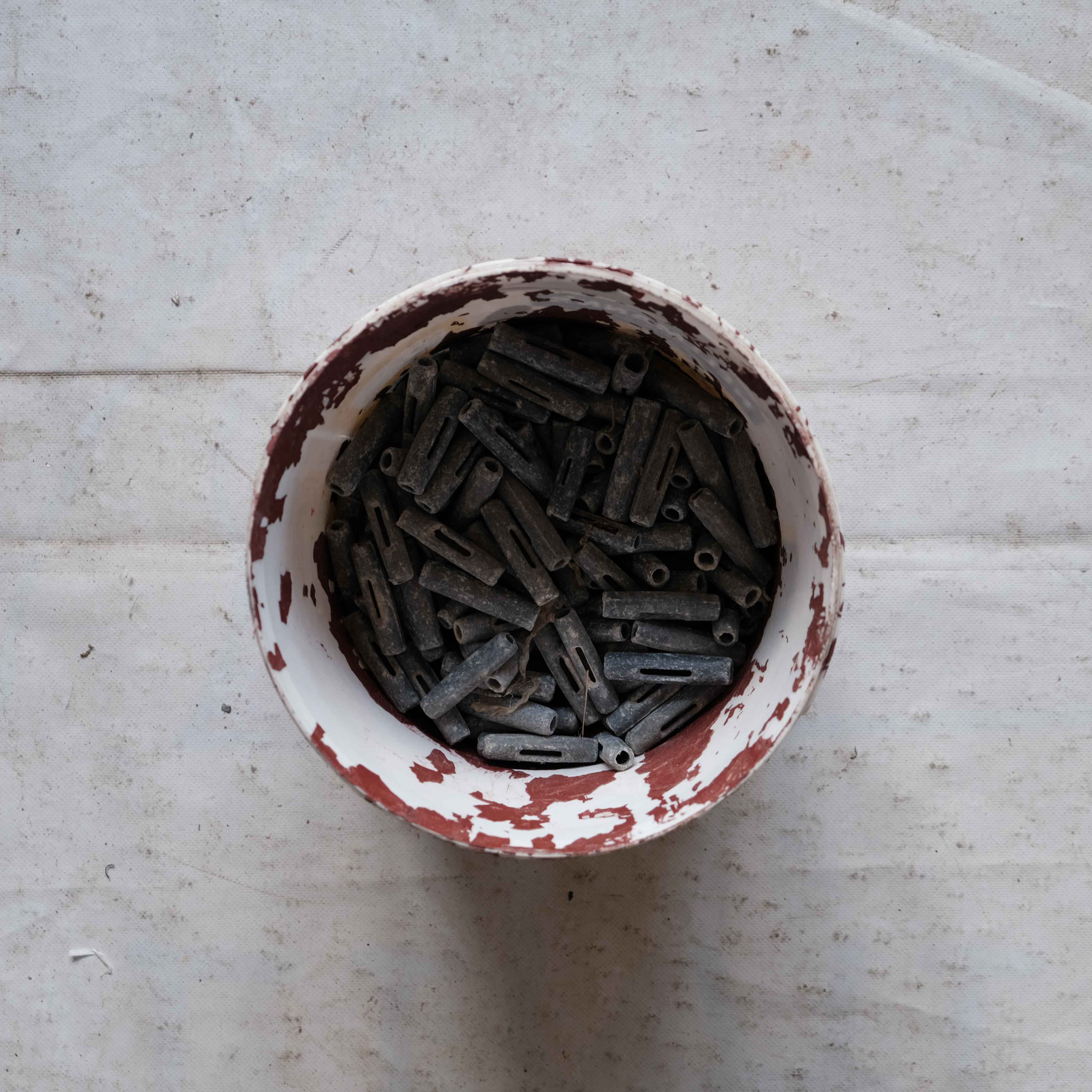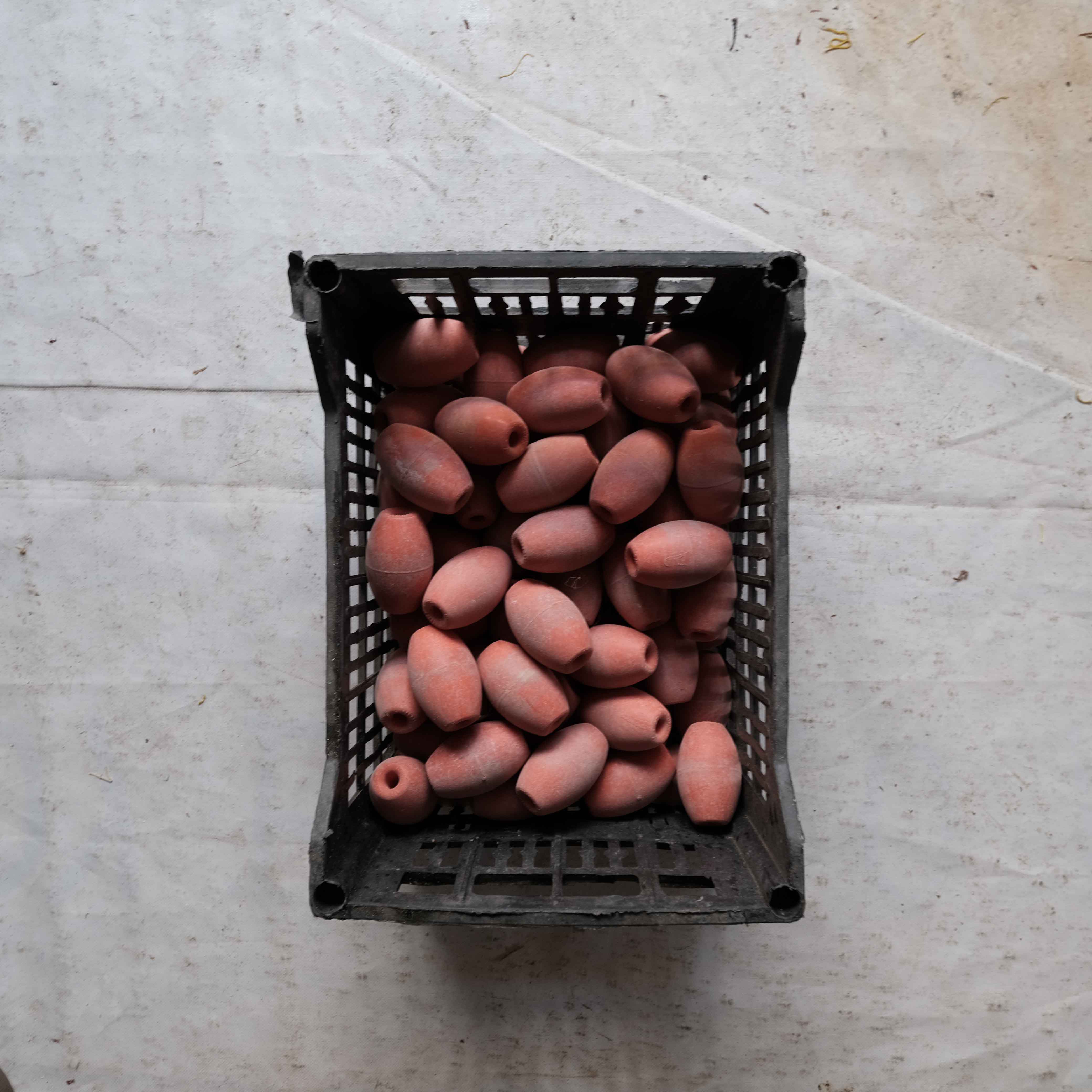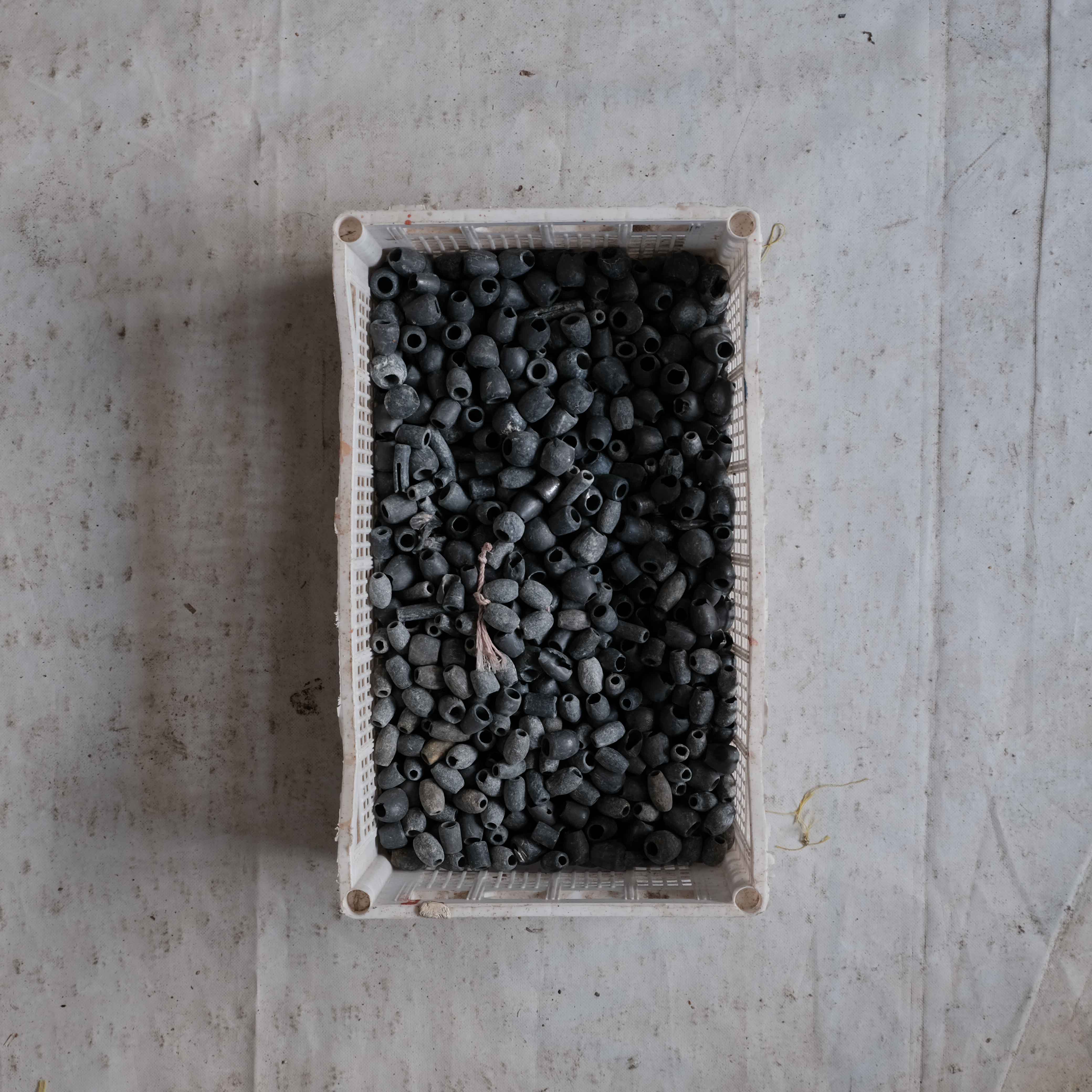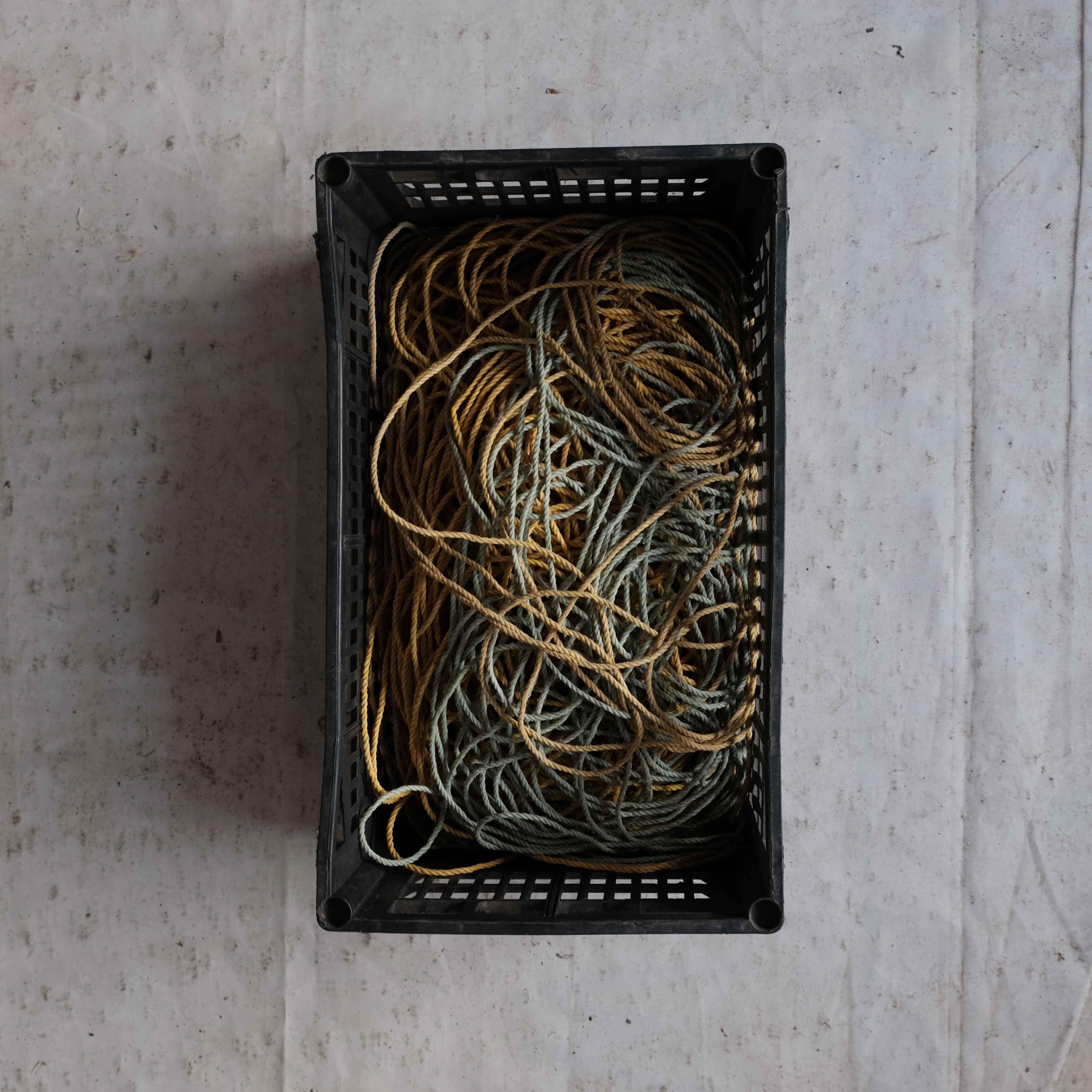 The wide range of equipment and accessories needed for net fishing and repair is on full display in this taxonomical documentation of selected nets, traps, buoys, ropes, weights and other items in Nikolaos Vekris’s workshop.