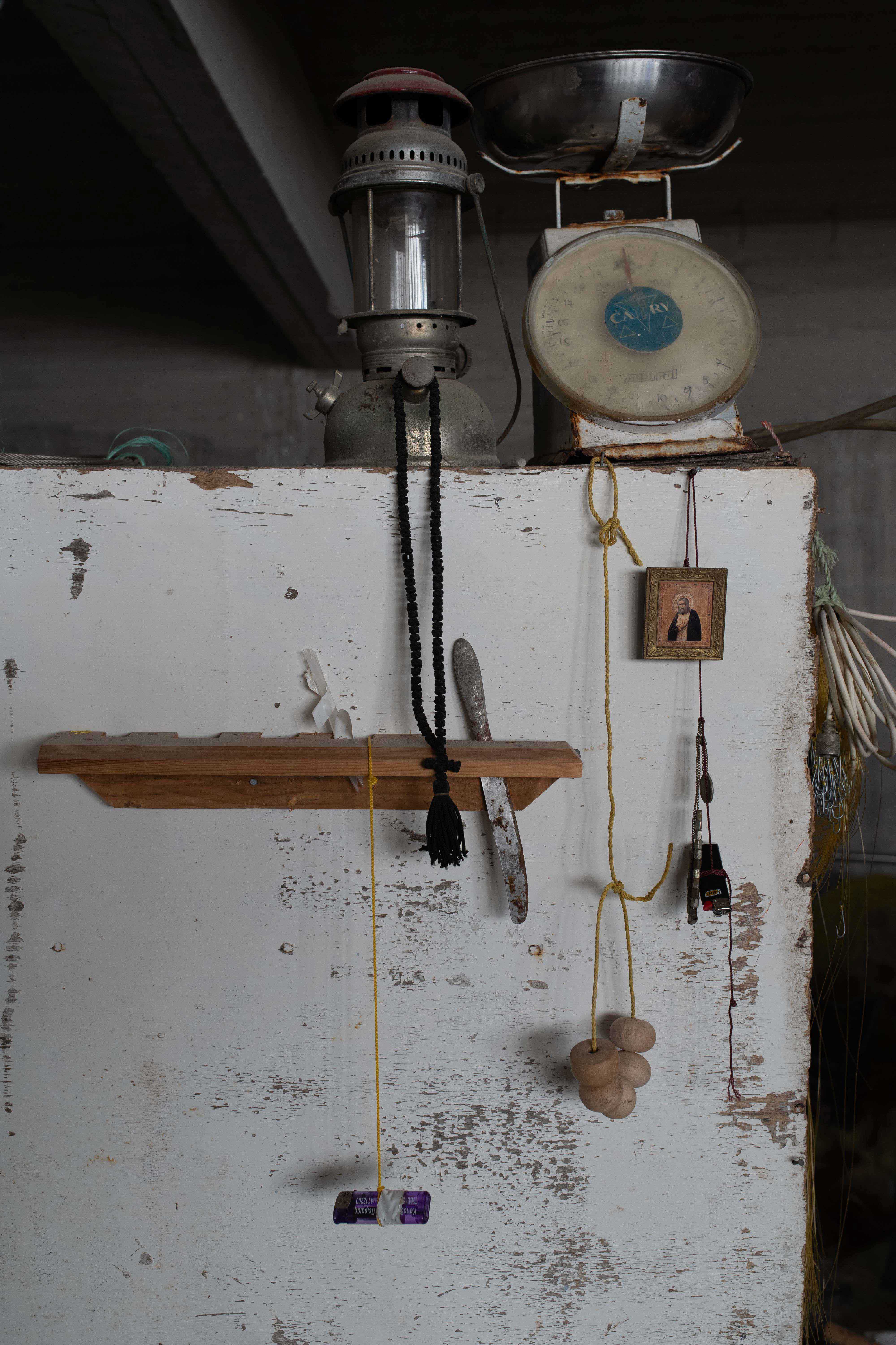 Nikolaos Vekris’s workshop, located in Katapola, showcases the tools and equipment necessary for net fishing and boat maintenance activity.