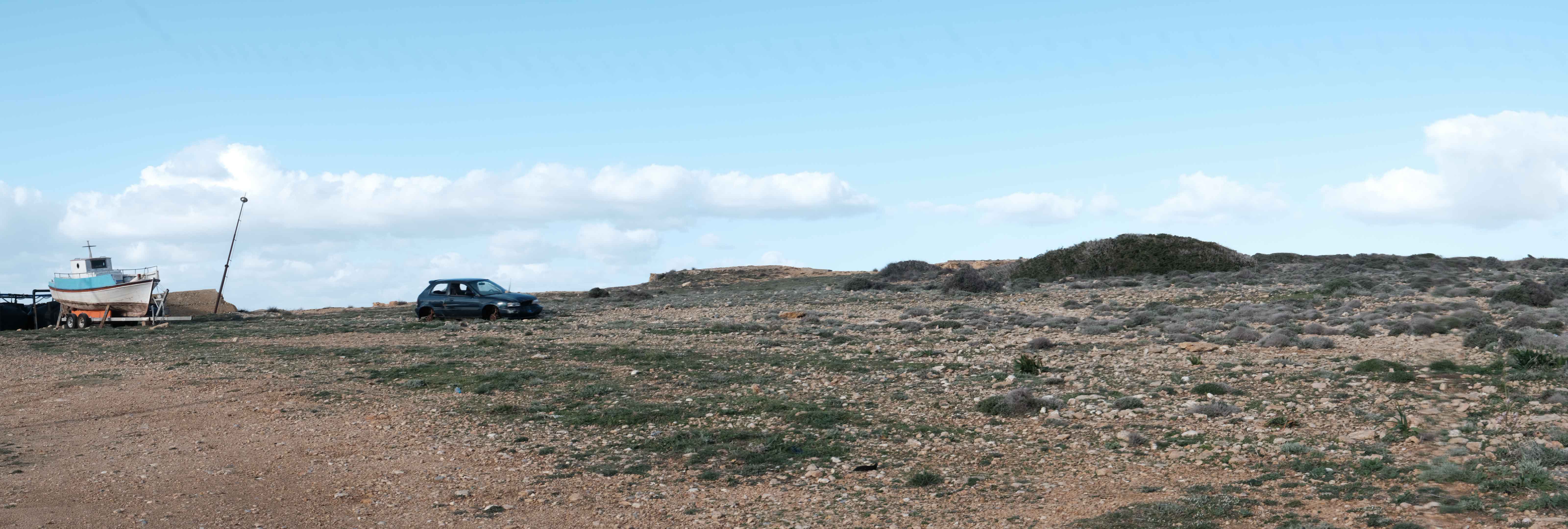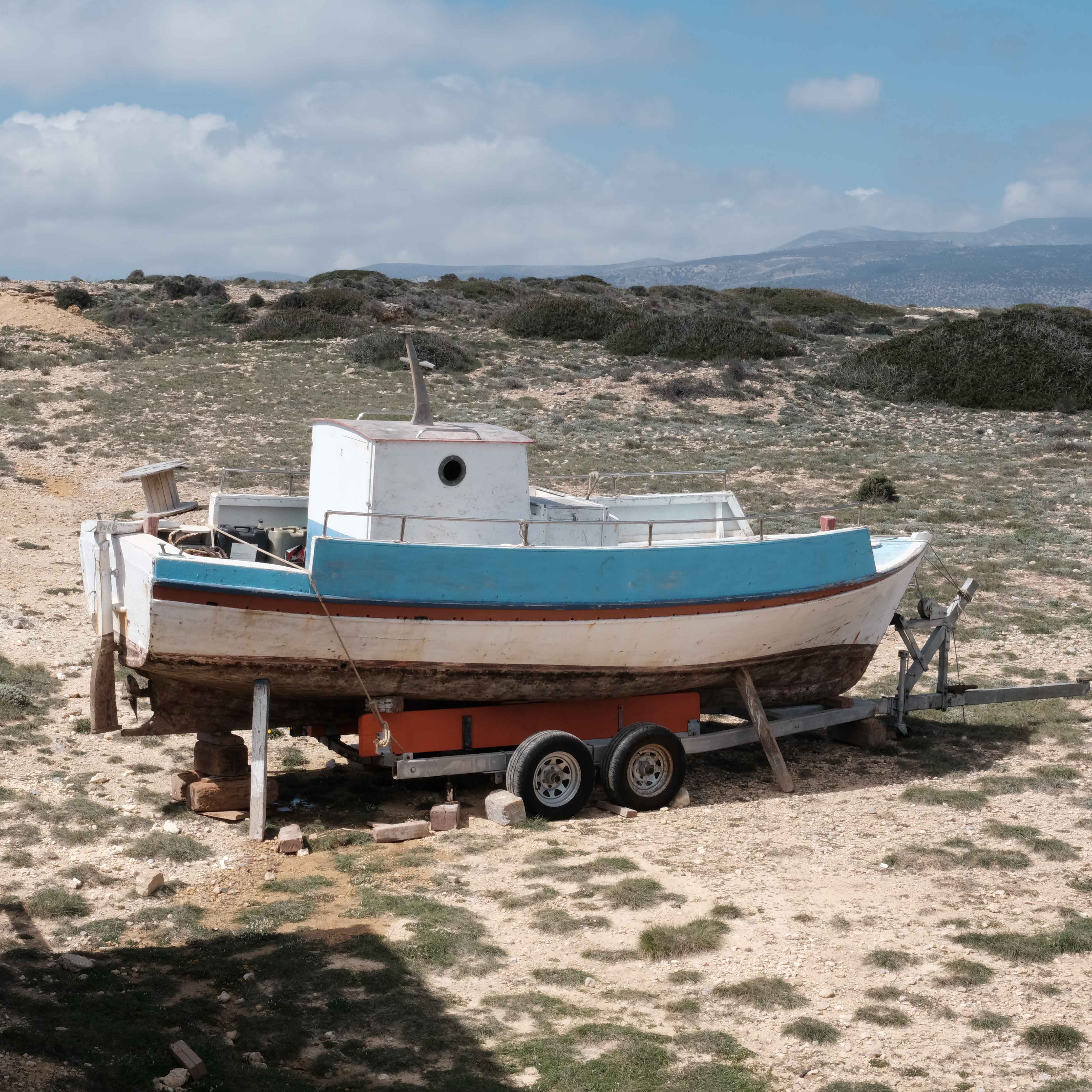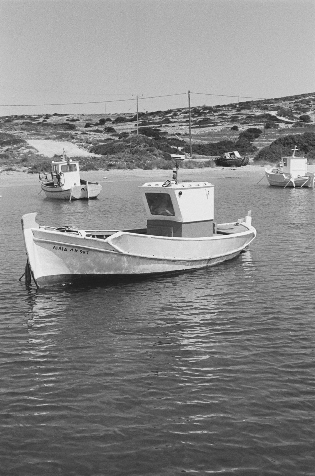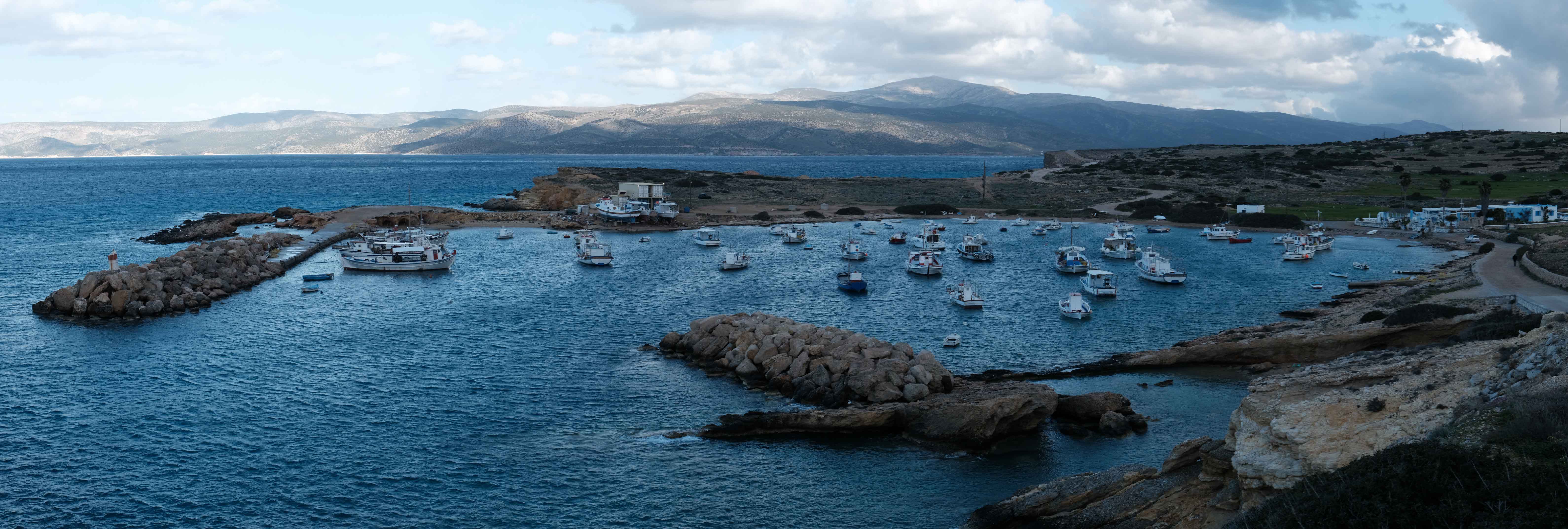 Parianos bay, a sheltered cove on the island’s southwestern side, serves as safe harbor for the fleet of fishing boats of Koufonisia. Since 2023, it also houses the island’s boatyard.