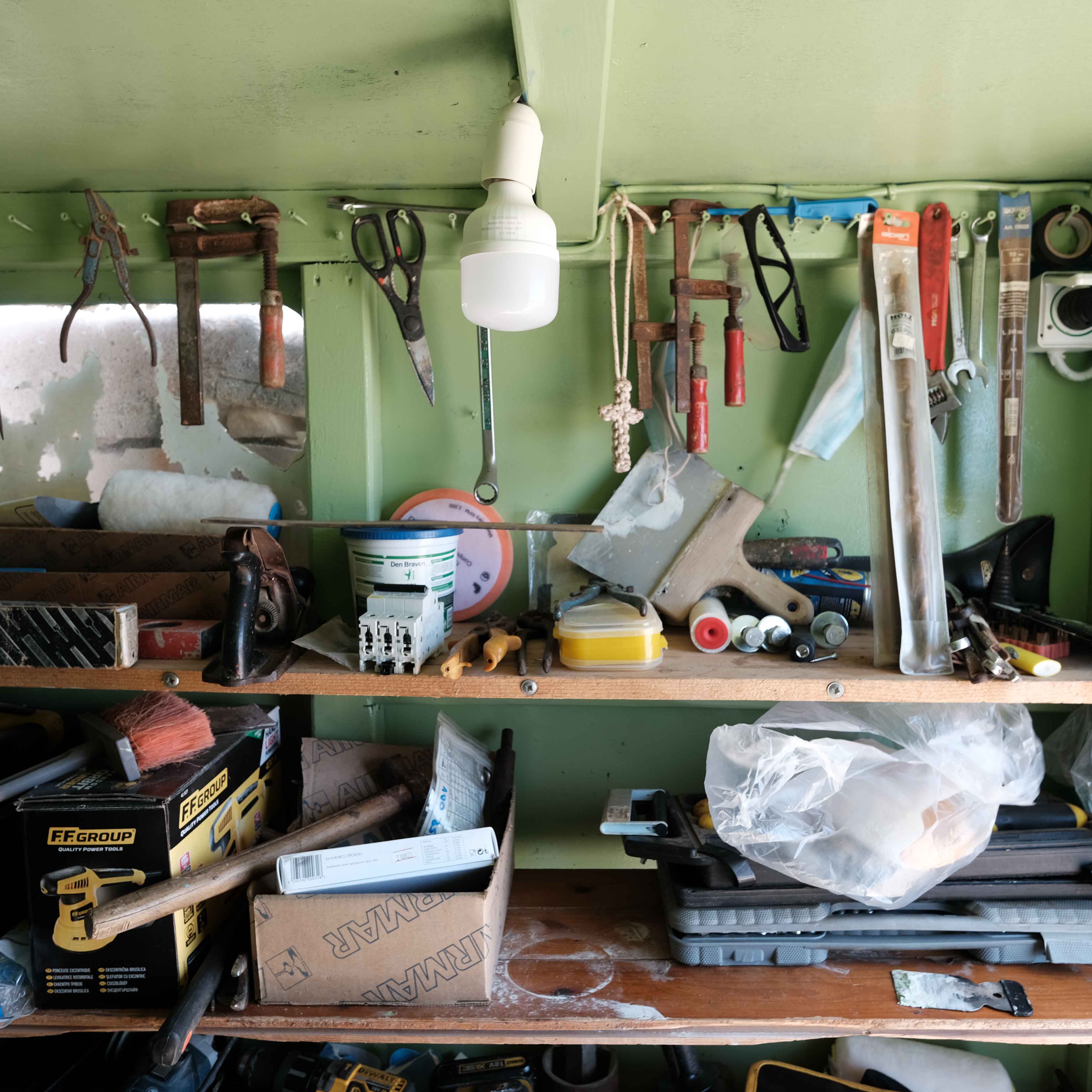 Winches, supports, tool sheds and other details illustrate the plethora of tools and objects necessary for a boatyard’s daily operations.