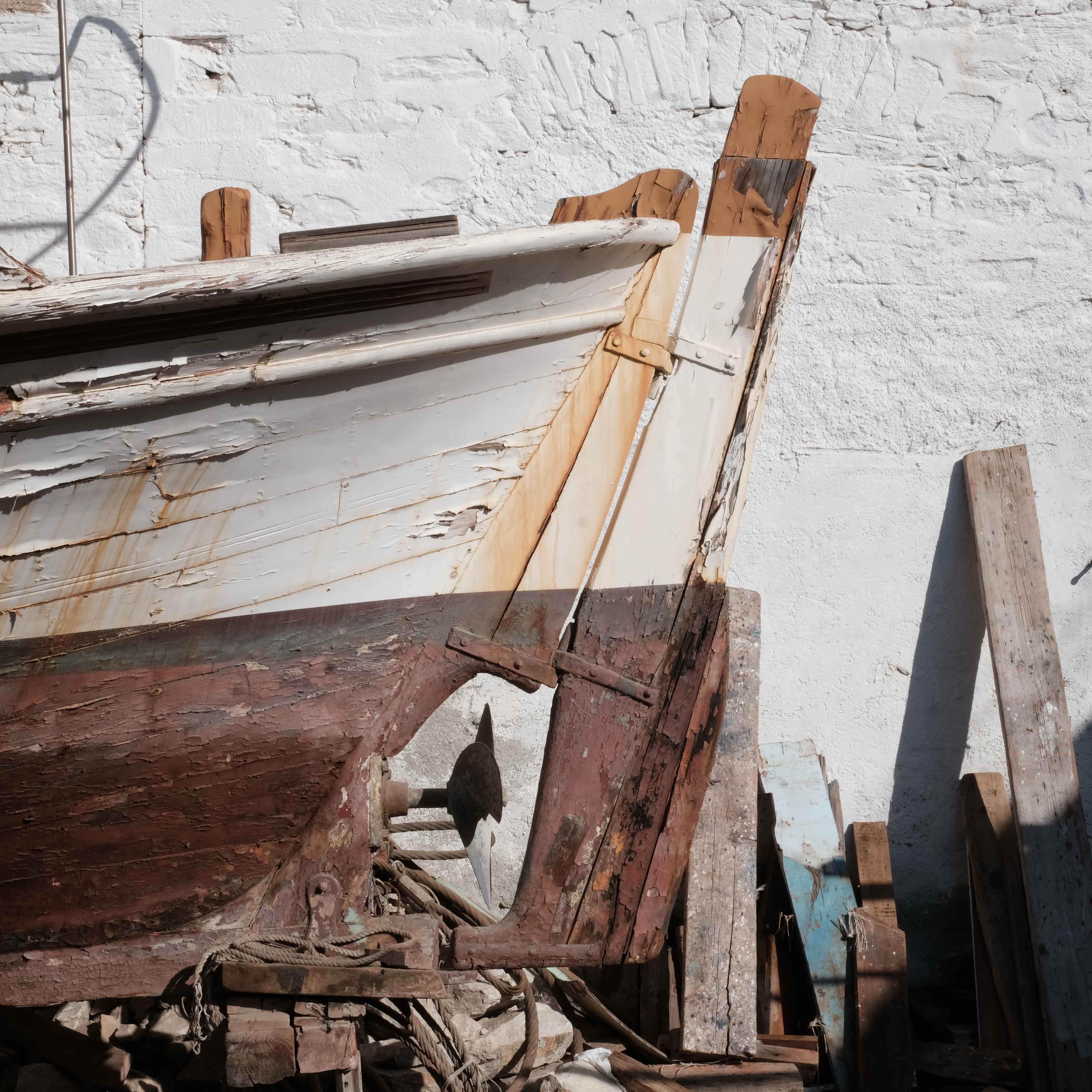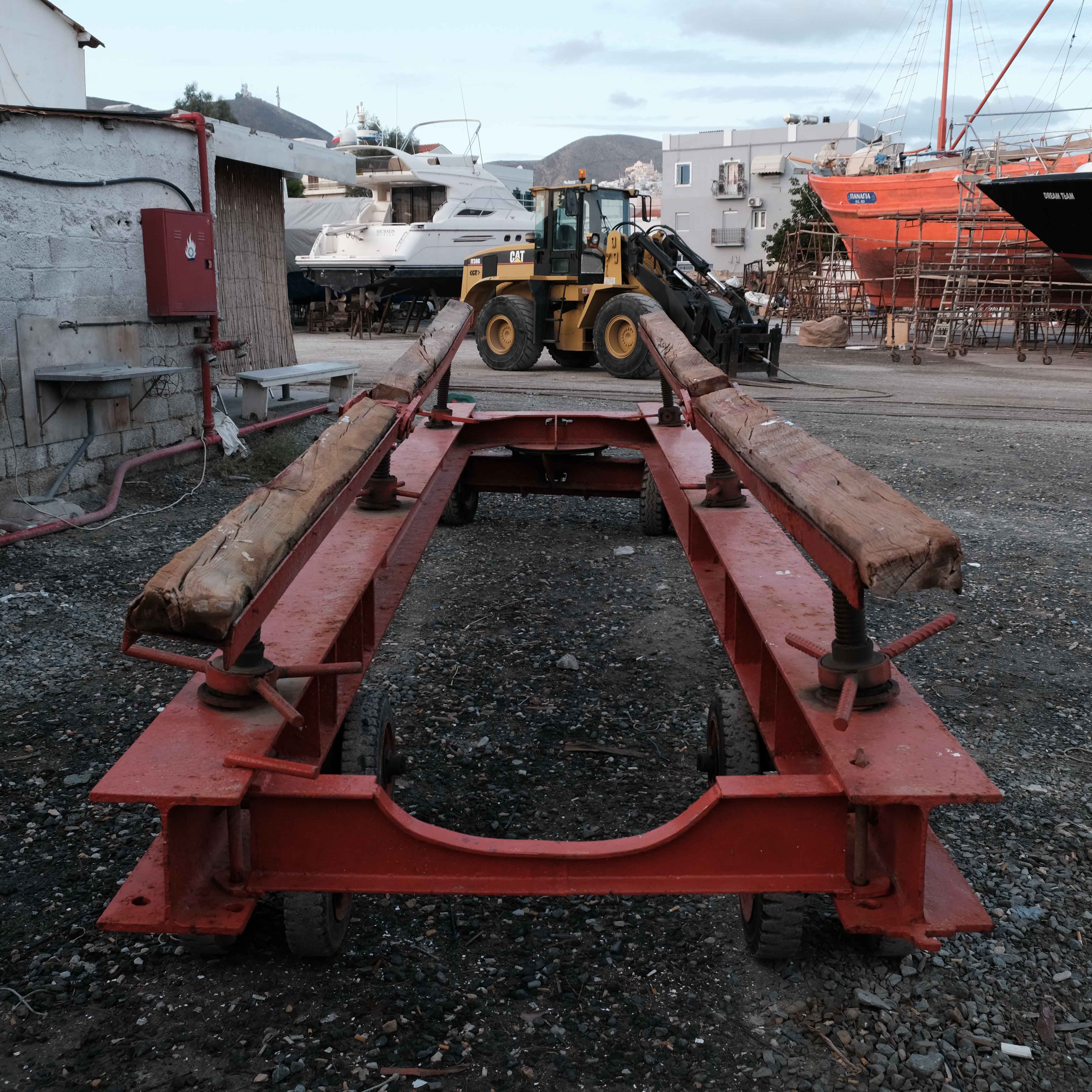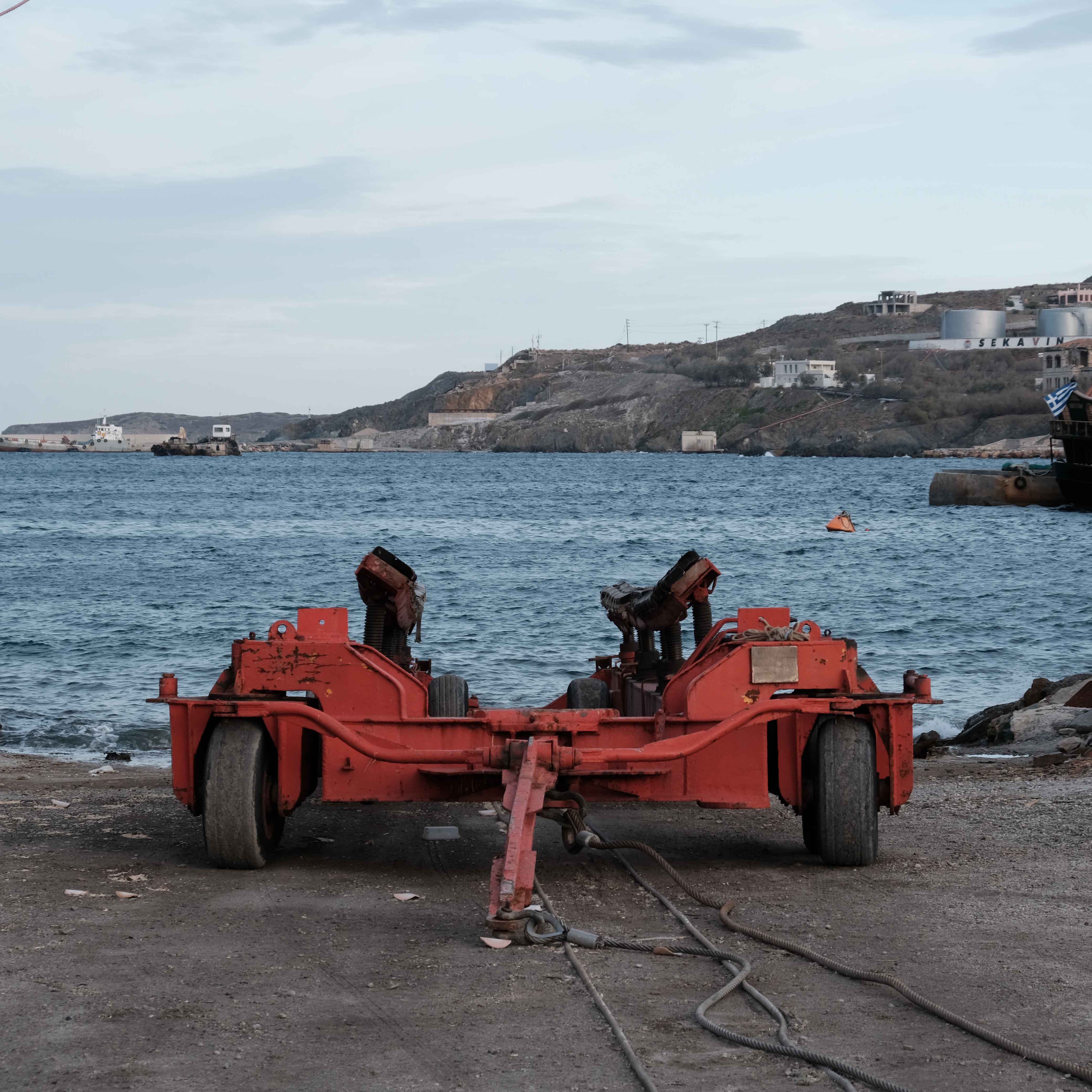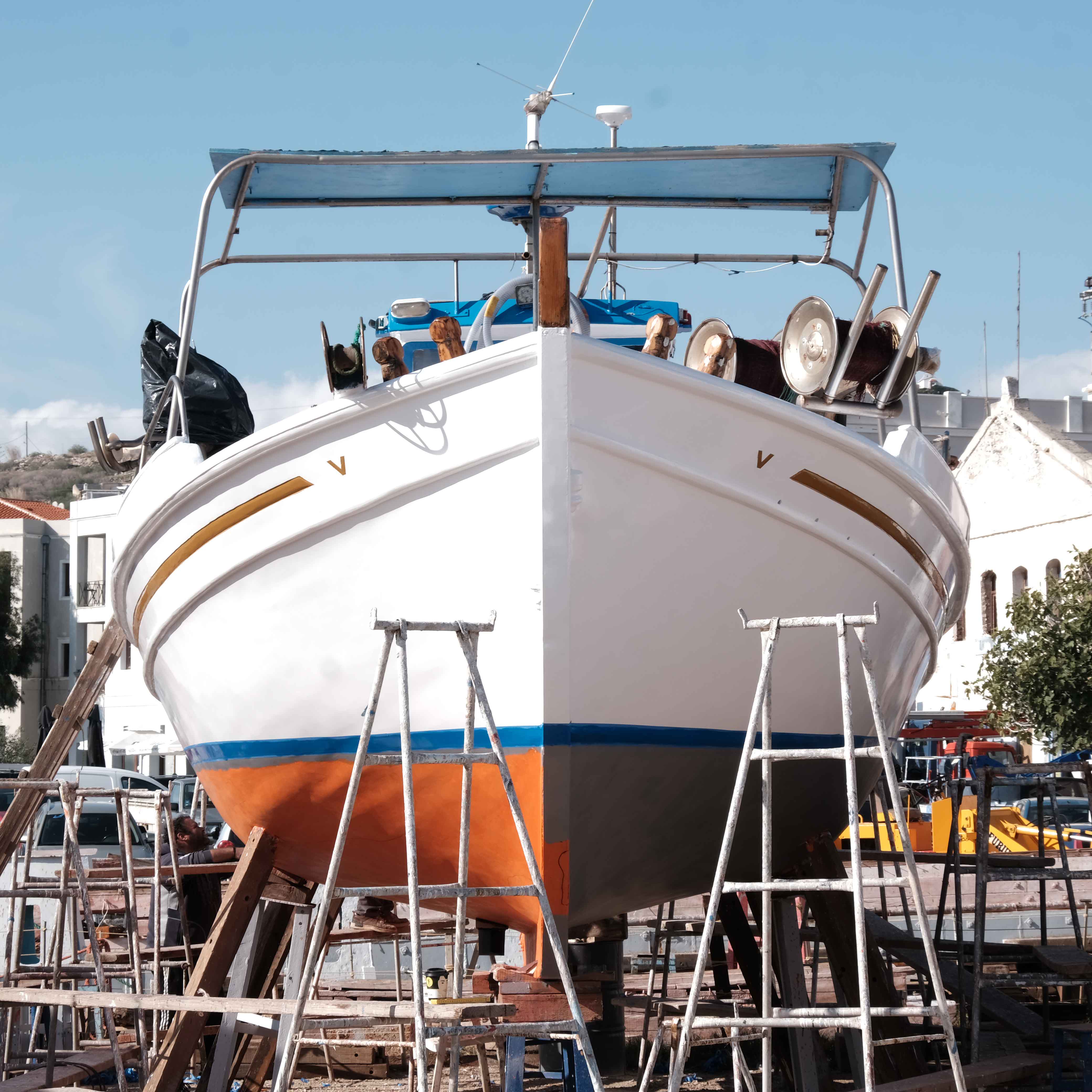 For five generations, the Polidoulis family has upheld the tradition of maintenance and caulking of wooden boats; drydocked boats, winches, and a wooden slipway form a portrait of the yard’s daily activity.