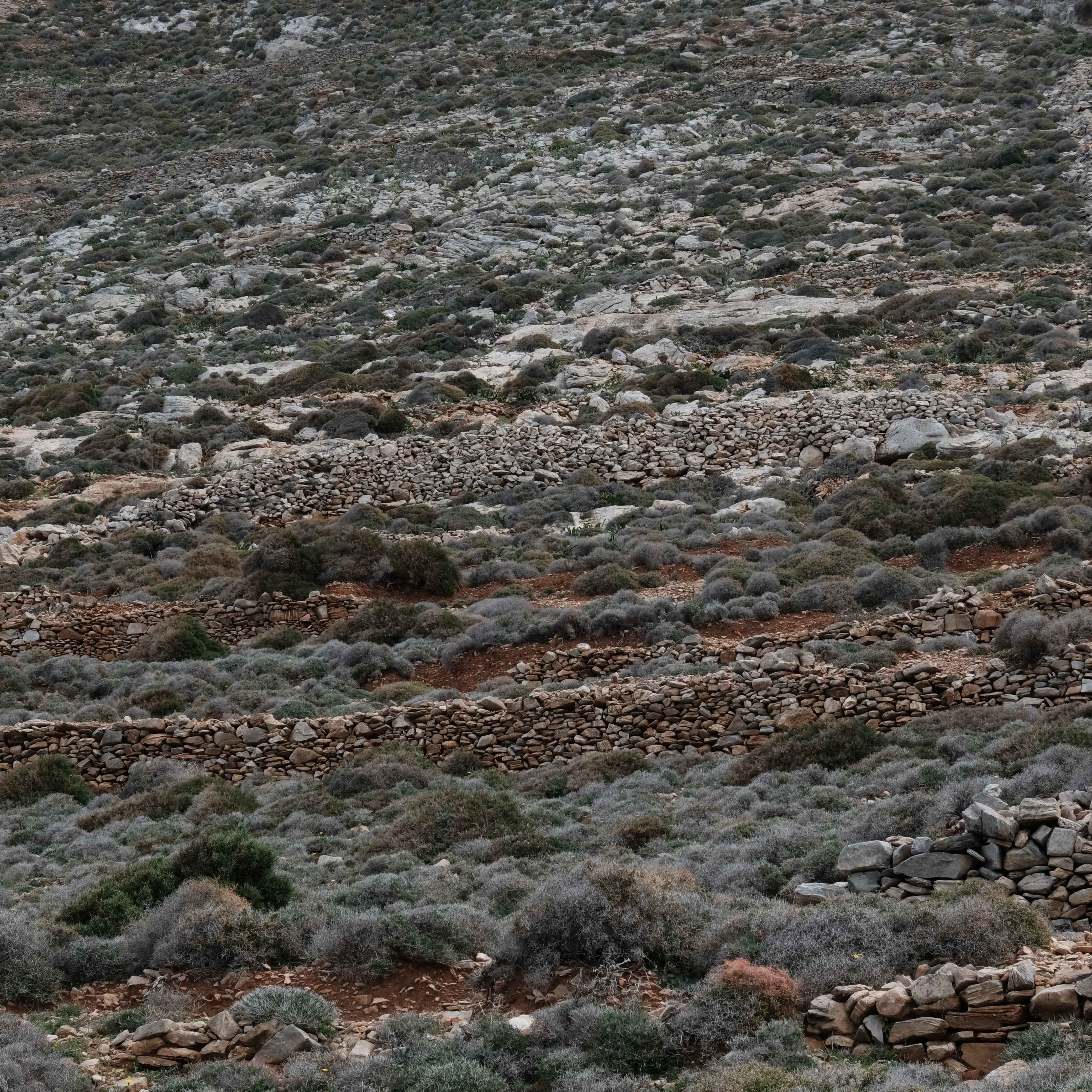 Aspects of Amorgos’s landscape, unique in many aspects to other Cyclades islands, are reflected at the surface level by this series of photographs documenting rocky outcrops and terrain near Tholaria village.